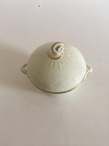 Bing & Grondahl Aakjær带盖糖碗,编号94。奶油色带金边。状态良好,12厘米。