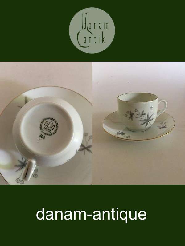 Bing & Grondahl Henrik咖啡杯和碟子,编号305。杯子尺寸为6 x 7厘米。