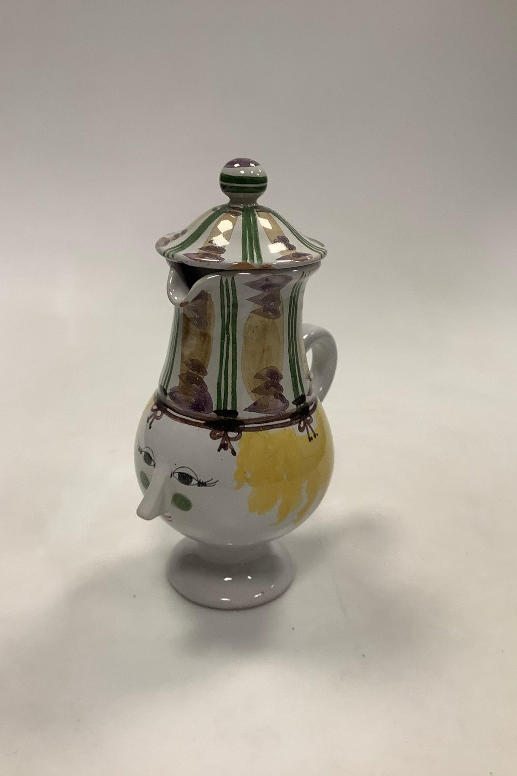 Bjørn Wiinblad工作室的花瓶,盖子是一个女人头的形状,1969年的K14号。