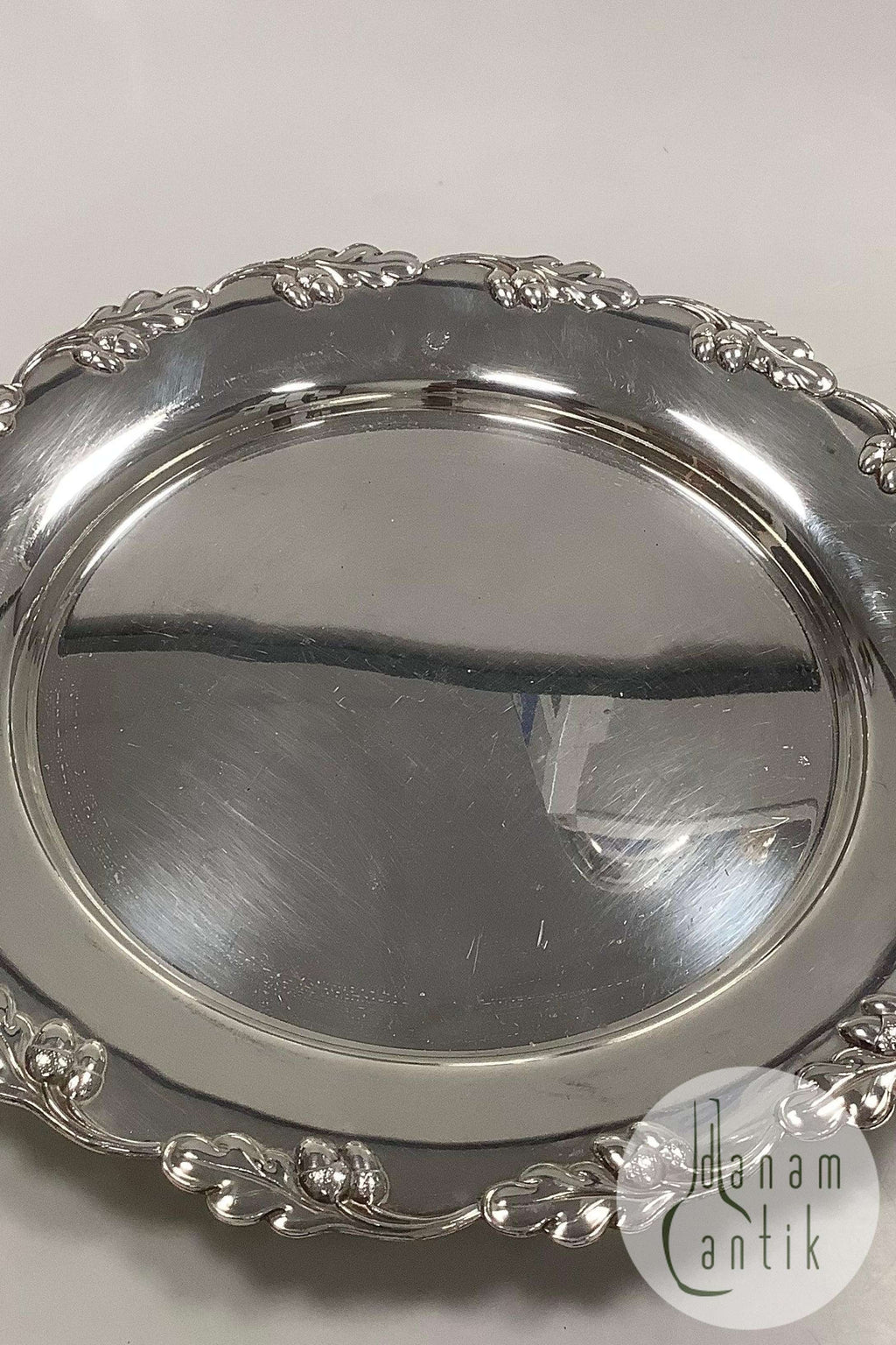 一套12个丹麦镀银盖板,带橡木边缘装饰尺寸29厘米/11.42英寸