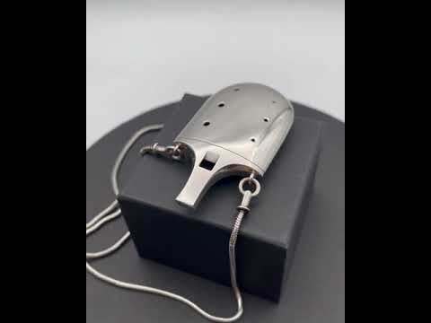 汉斯-汉森纯银长笛带链。可以使用,而且状况良好。尺寸为8厘米×4厘米。链条是60厘米。重量为86克。