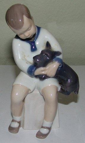 Bing & Grondahl图男孩与苏格兰狗No 2201。尺寸为17.5厘米,状态良好。设计者:克莱尔-魏斯。