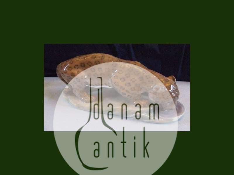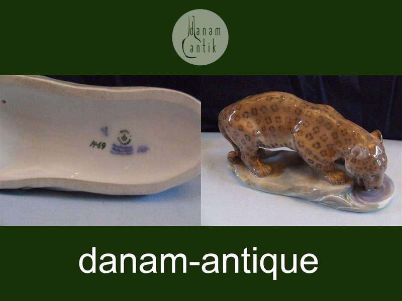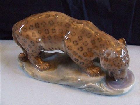 Royal Copenhagen Figure Jaguar on Base Drinking No 1469。状况良好,但在底座上有一个釉面痕迹,这就是为什么它被标为二级品。