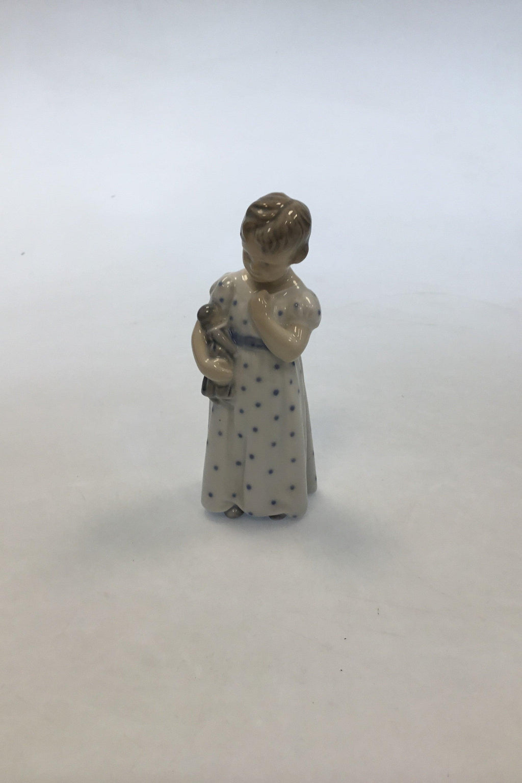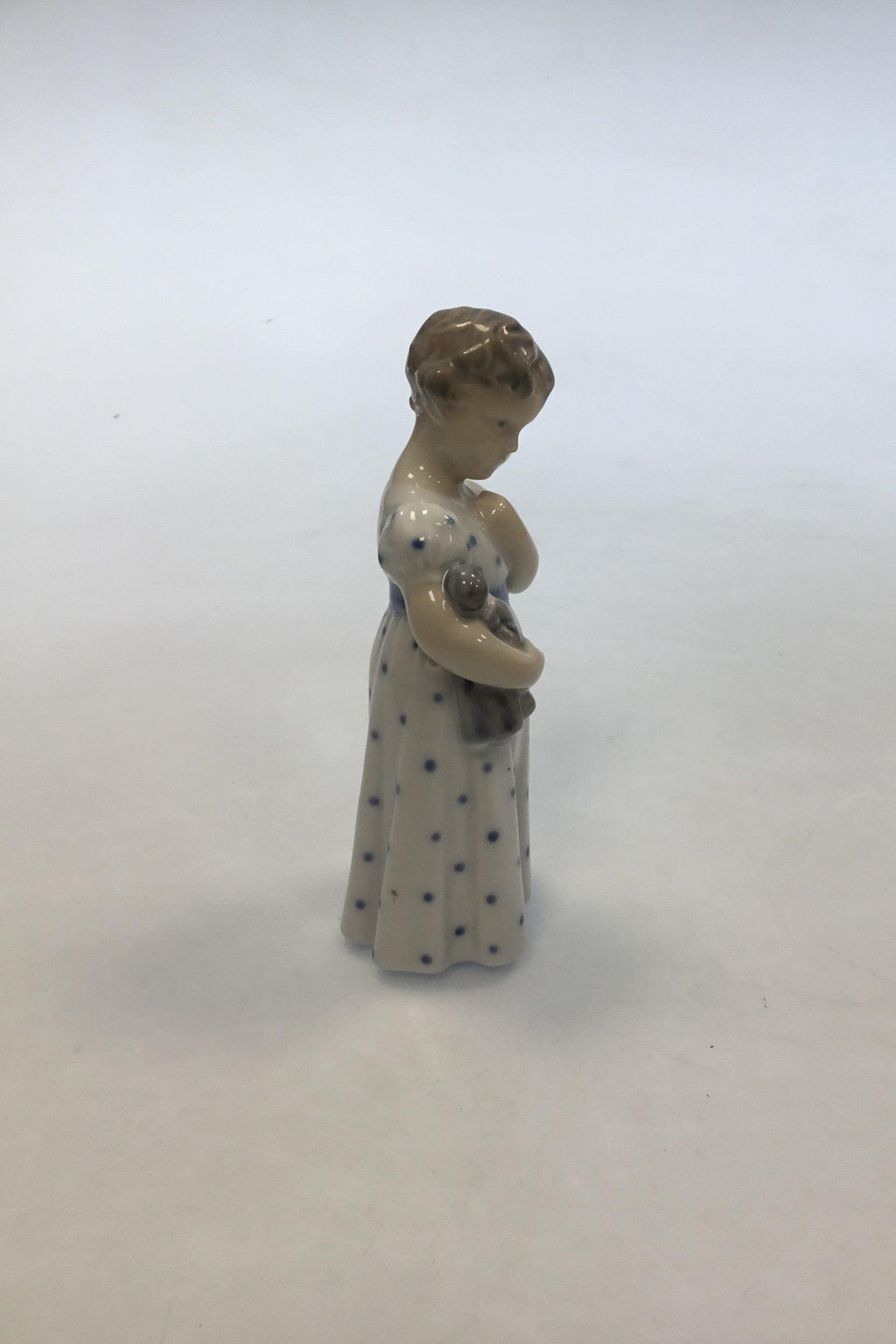 皇家哥本哈根第3539号人物,穿着睡衣的女孩和娃娃。整体状况良好。尺寸为14.5厘米(5 45/64英寸)。