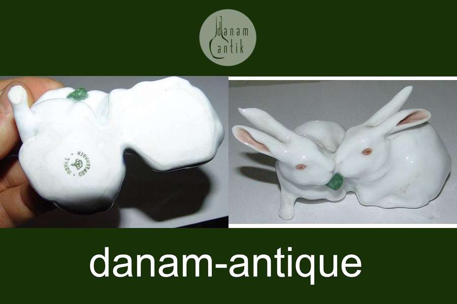 Royal Copenhagen Figurine Pair of Rabbits No 518 Pre 1923. 尺寸5cm x 10cm,状态良好。设计者:Arnold Krog.