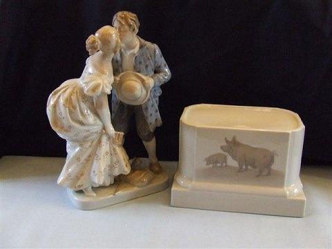皇家哥本哈根的公主和野猪男孩小雕像(带底座)No 1114