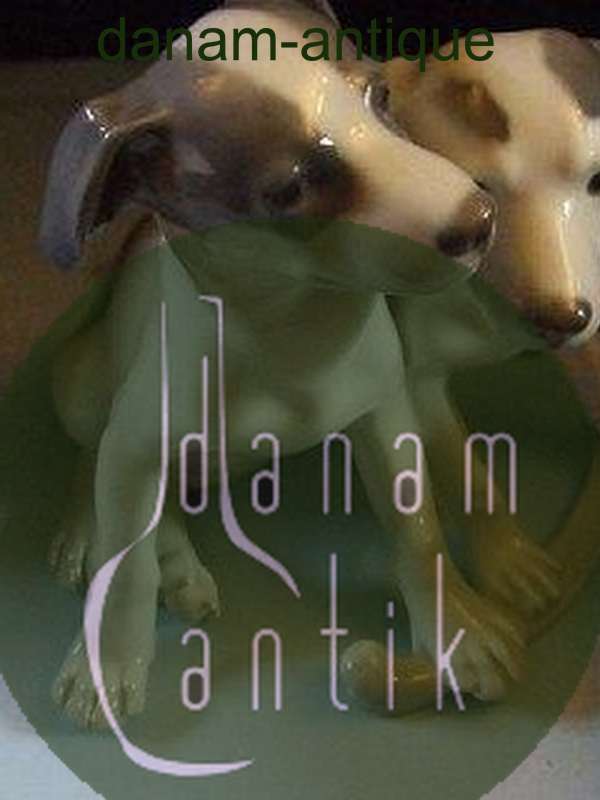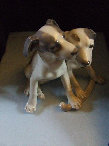 Royal Copenhagen Figure to Hound puppies with legs No 750. Design by Erik Nielsen. 尺寸为23cm x 26cm,状态良好。