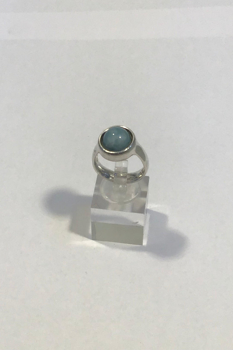 Georg Jensen纯银球体戒指,编号473,带浅绿色石头。设计者:Regitze Overgaard。