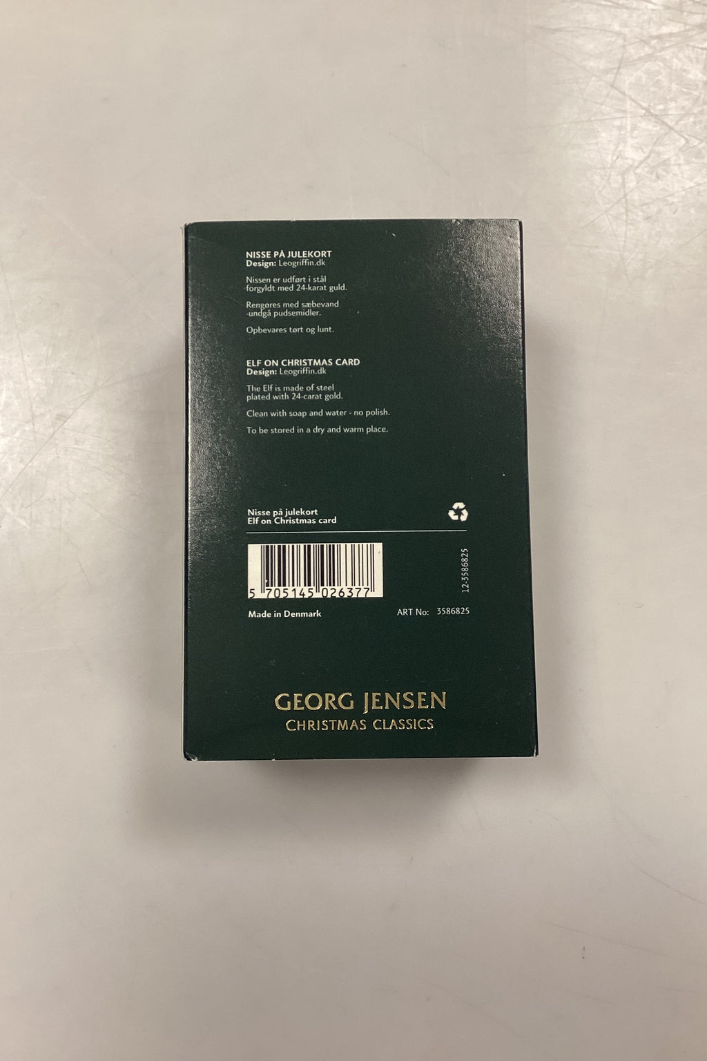 Georg Jensen Christmas Classics Julepynt - Nisse på Julekort. Designet af Leo Griffin. Stål forgyldt med 24-karat guld.Måler 10 cm / 3,93 in.