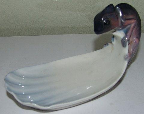 Rørstrand Art Nouveau 蜥蜴碗。尺寸为16.5厘米,状况良好。碗的前面的釉面有一些瑕疵。