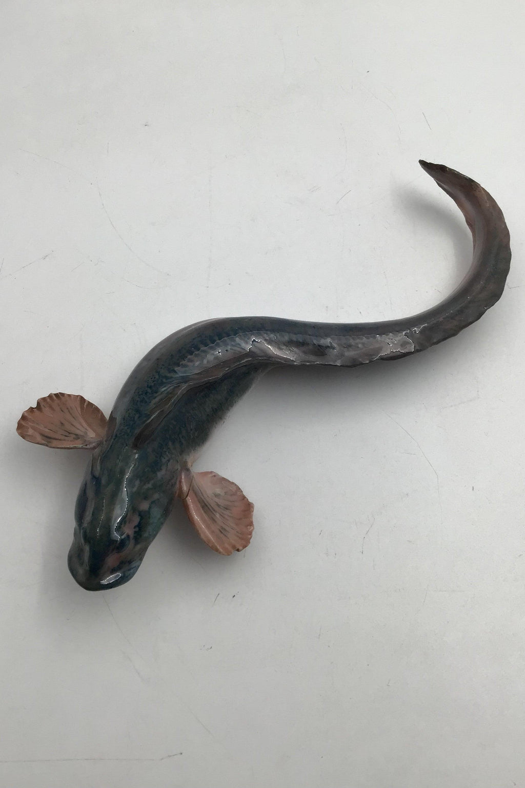 Royal Copenhagen Unika Figur af Ålekvabbe / Fisk signeret af Hallin i 1889