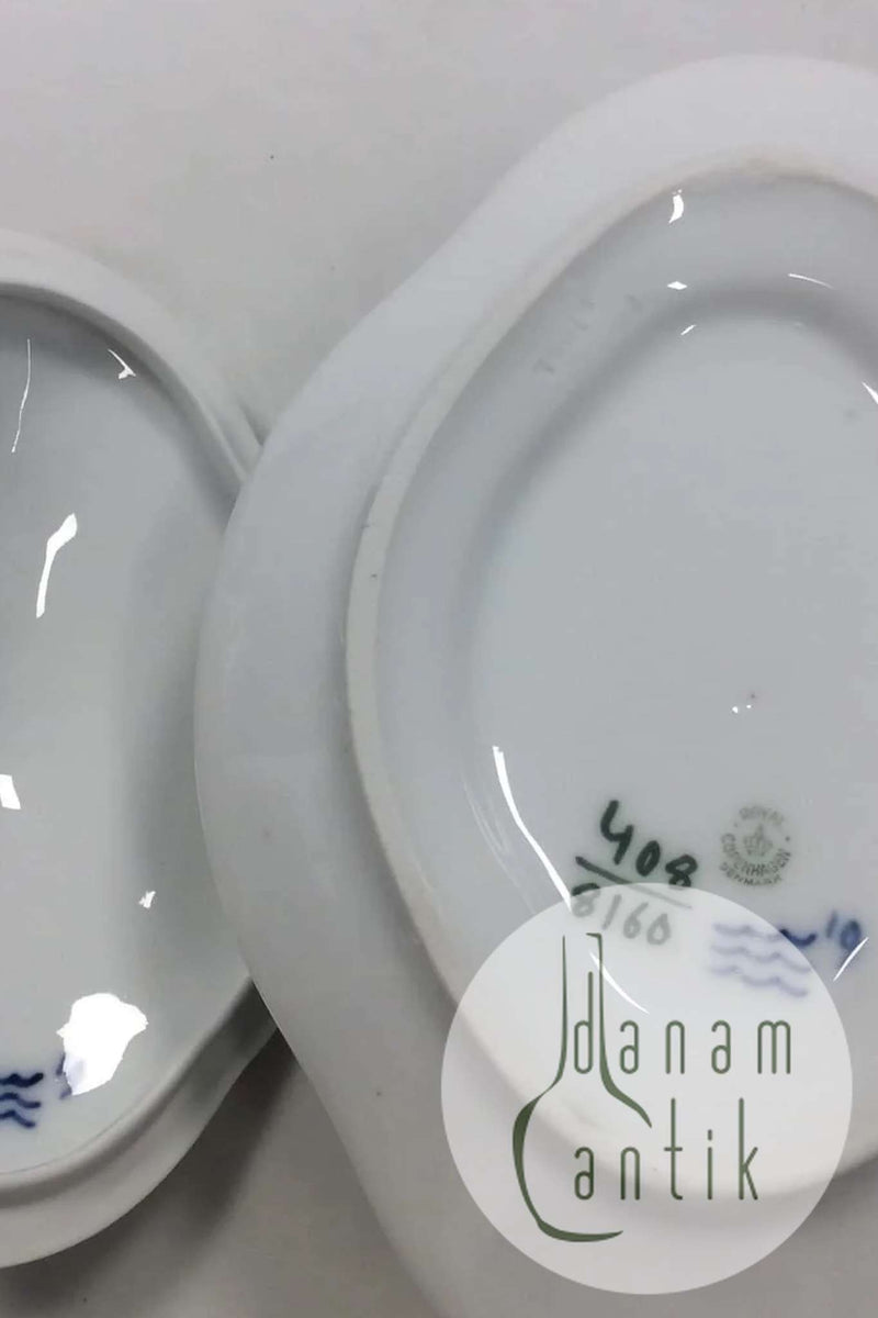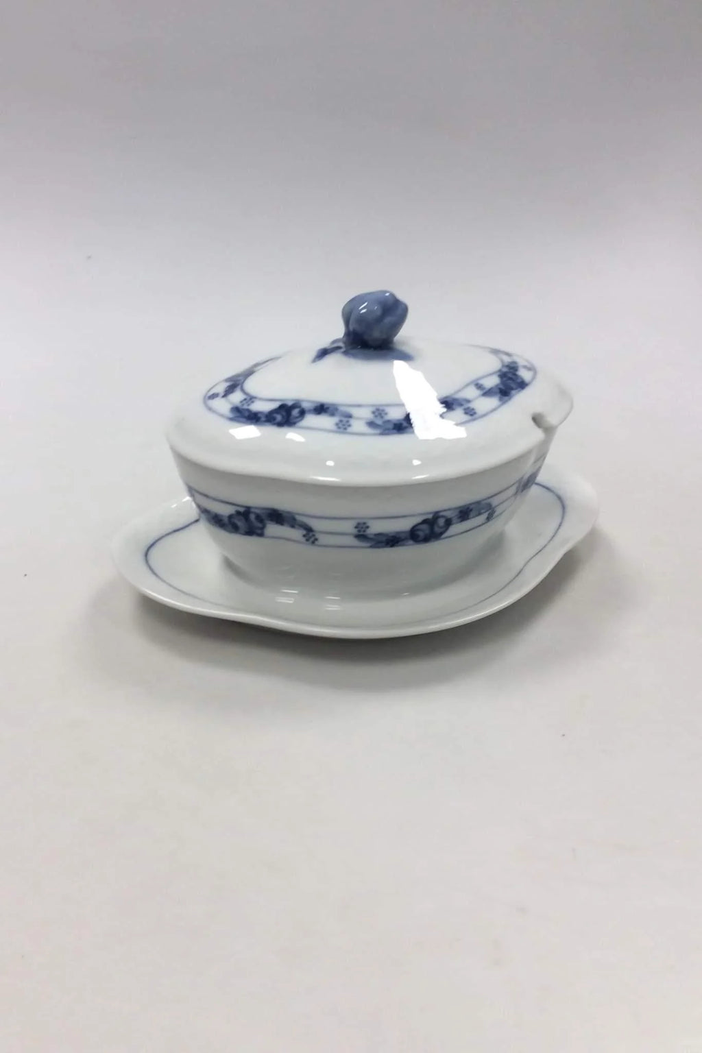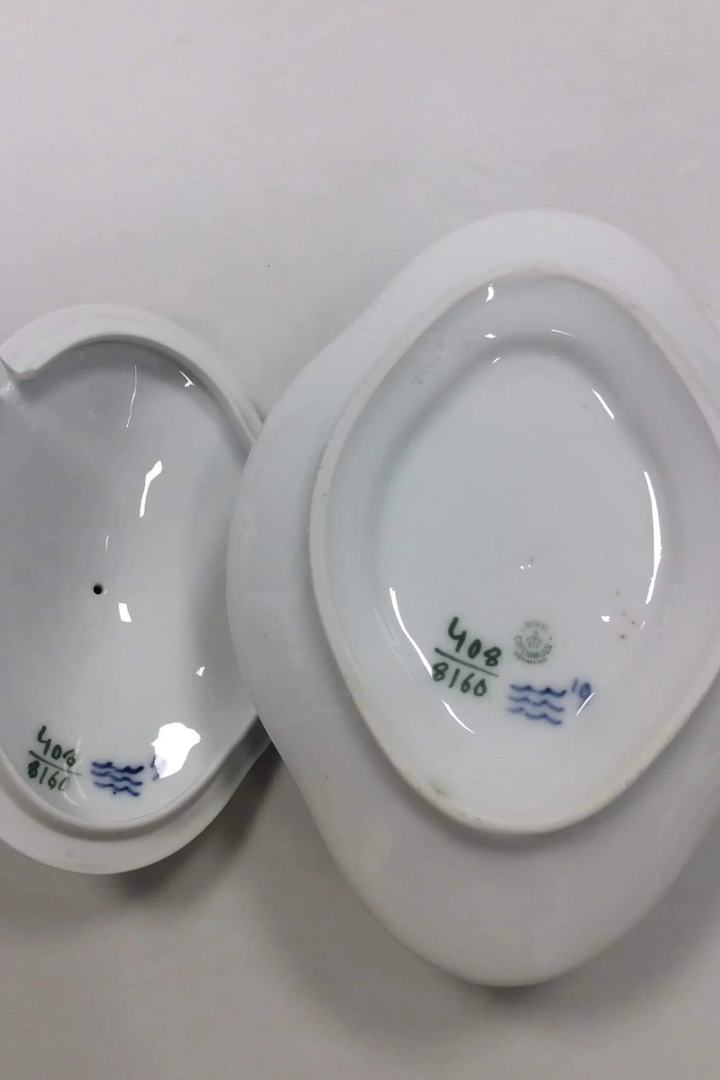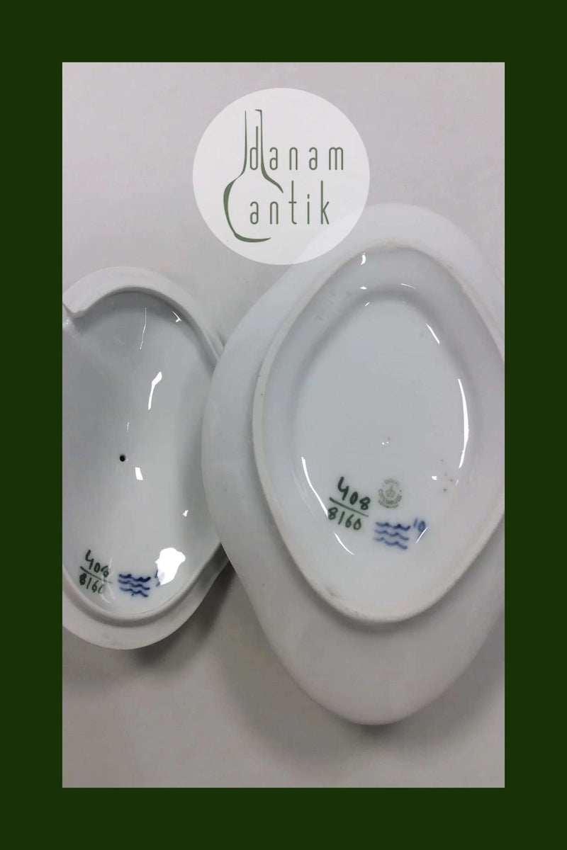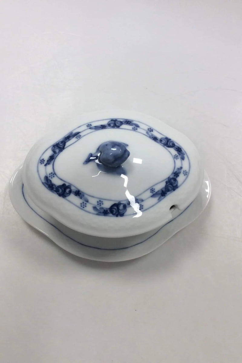 皇家哥本哈根玫瑰花蕾碟,带盖子和碟子,编号8090。尺寸为22厘米x16厘米(8.66英寸x6.30英寸)。