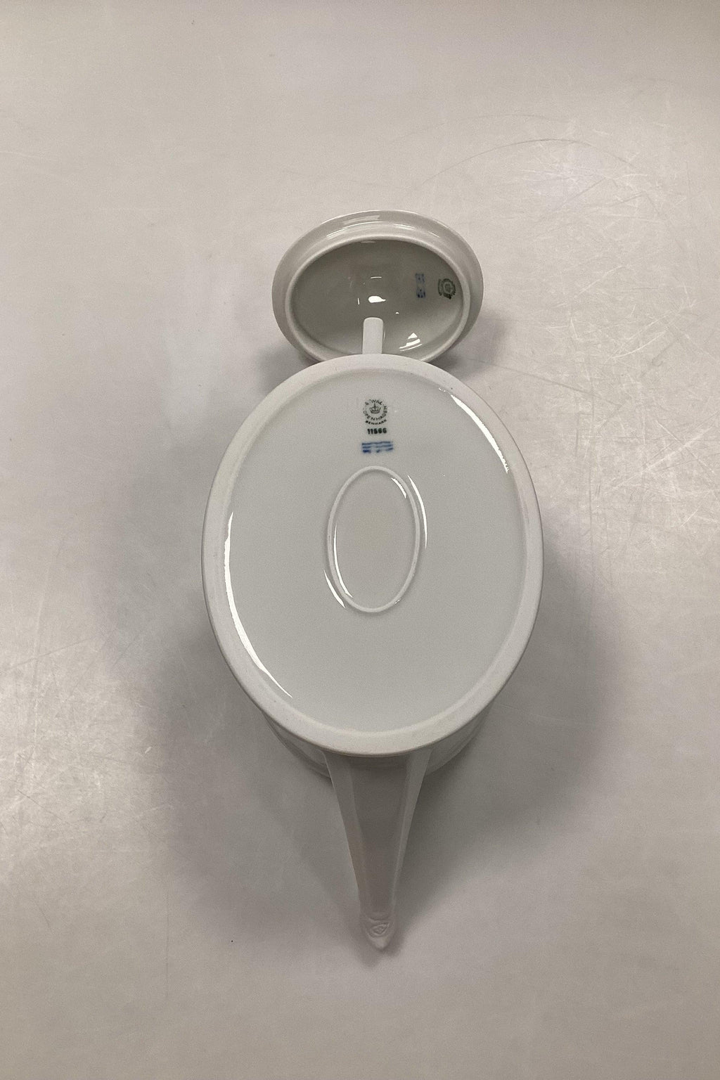 皇家哥本哈根白色扇形茶壶,编号11566。尺寸为17厘米×27厘米/6.69英寸×10.62英寸。内容:90升。状态完美。