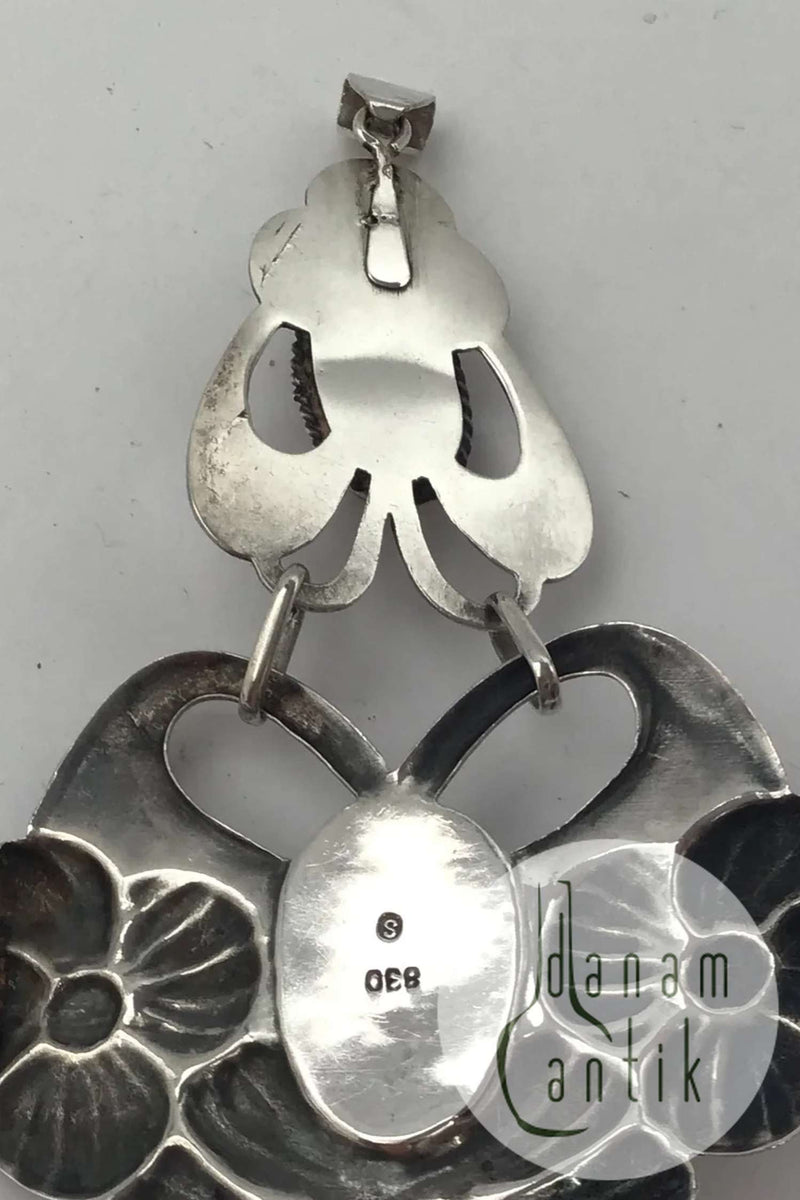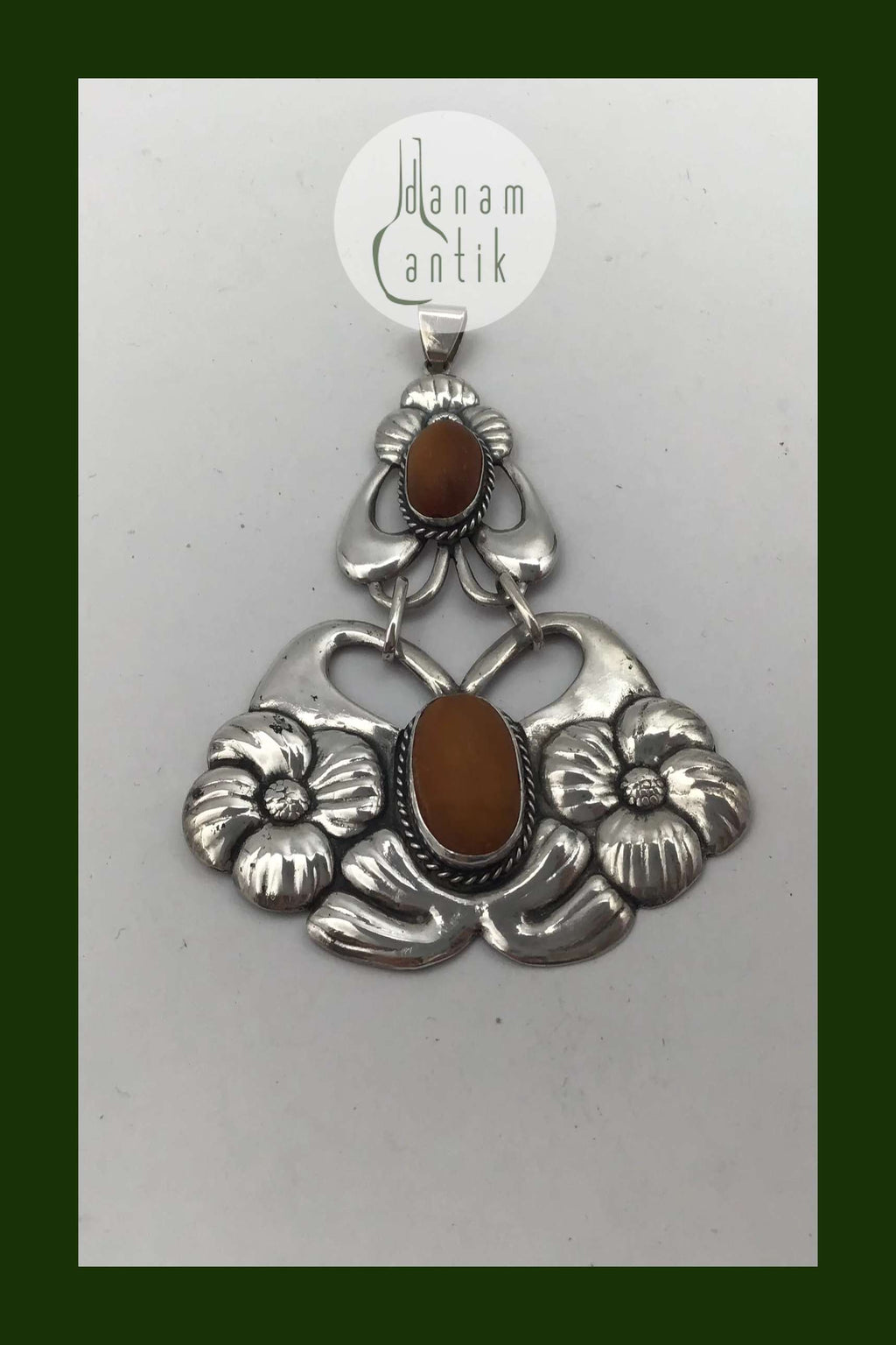 Dansk Sølv Skønvirke Art Nouveau Vedhæng med Rav Måler 9.2 cm x 6.3 cm (3.62 inch x 2.48 inch) Vægt 15.8 gr (0.56 oz) (Redesignet broche)
