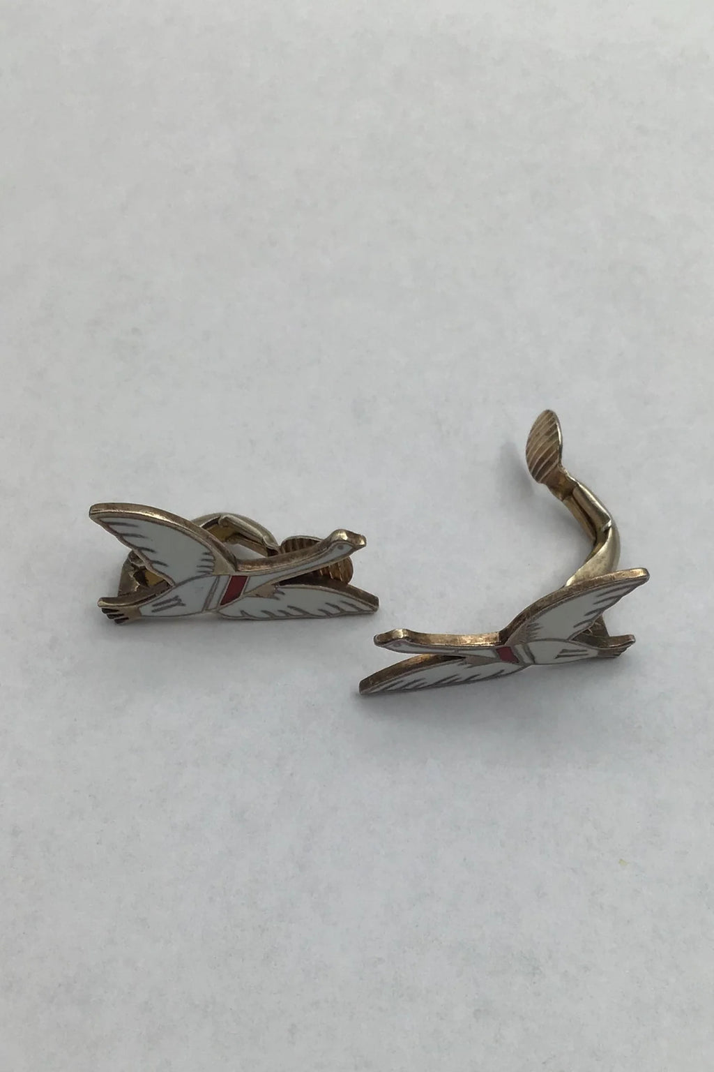 Erik Magnussen纯银耳环,与5只天鹅的珐琅胸针相匹配。带有象征北欧国家的5只天鹅的胸针,1940年。耳环长2.6厘米,很少见。