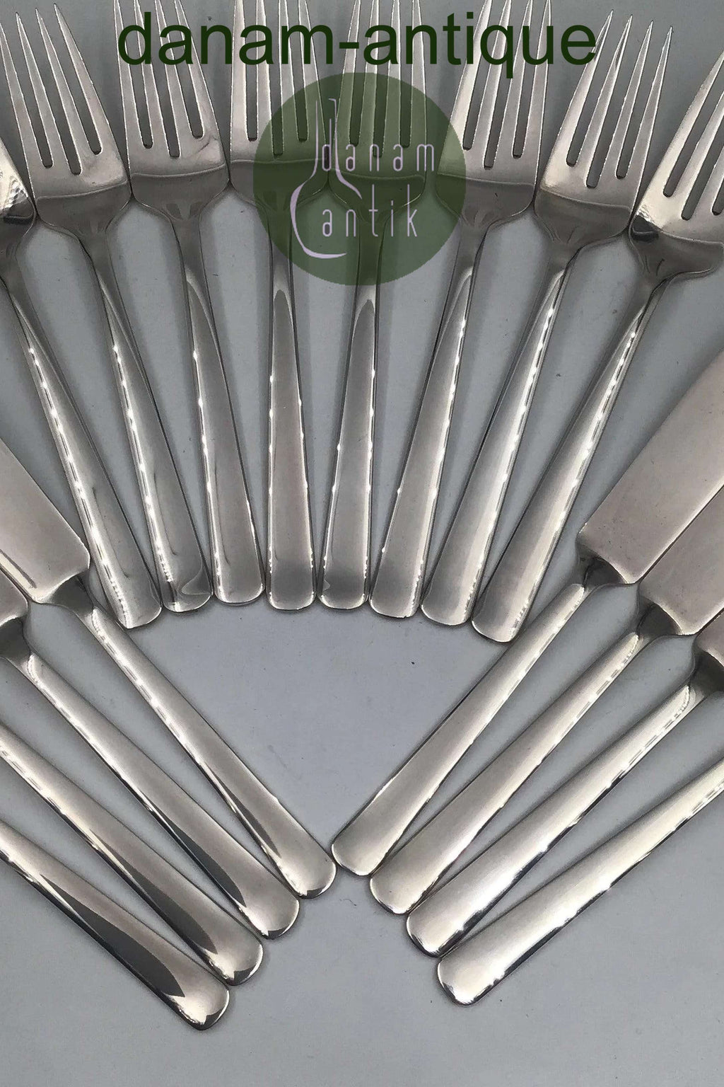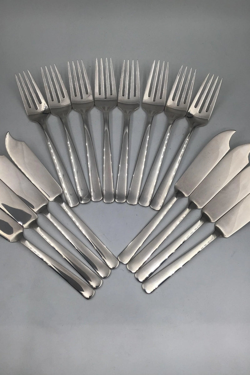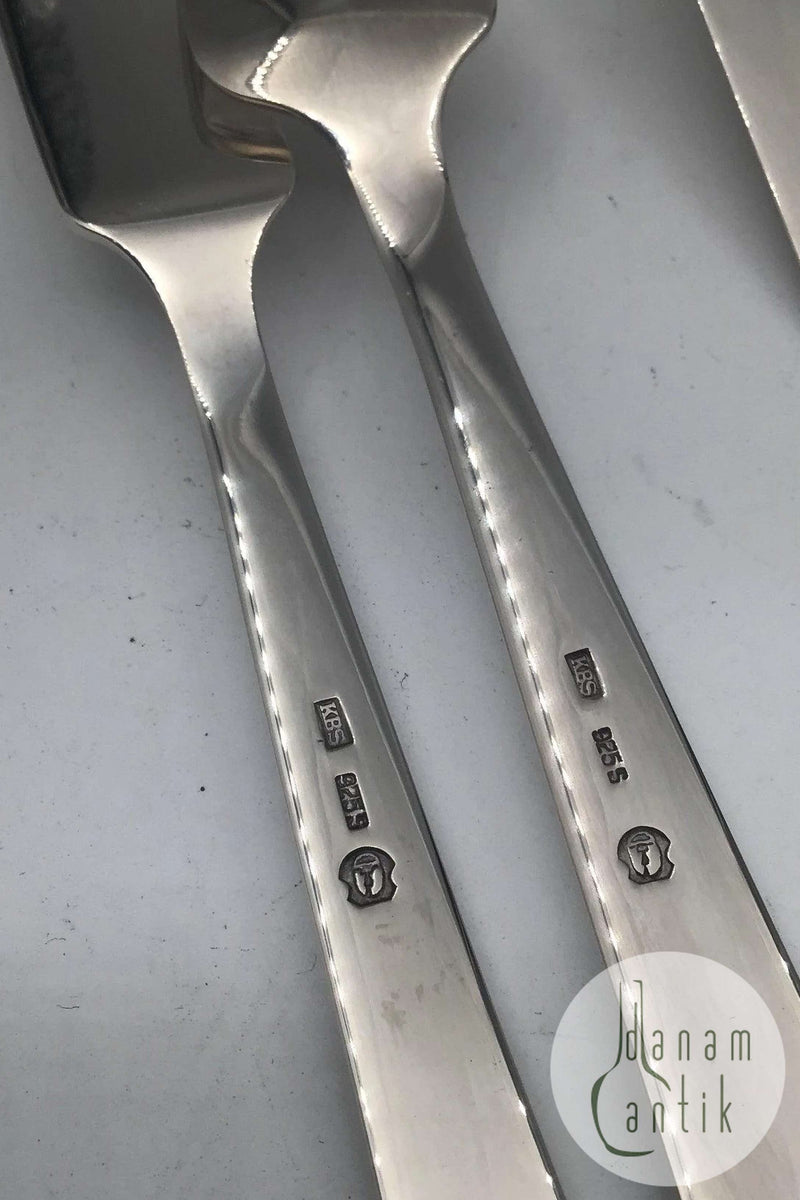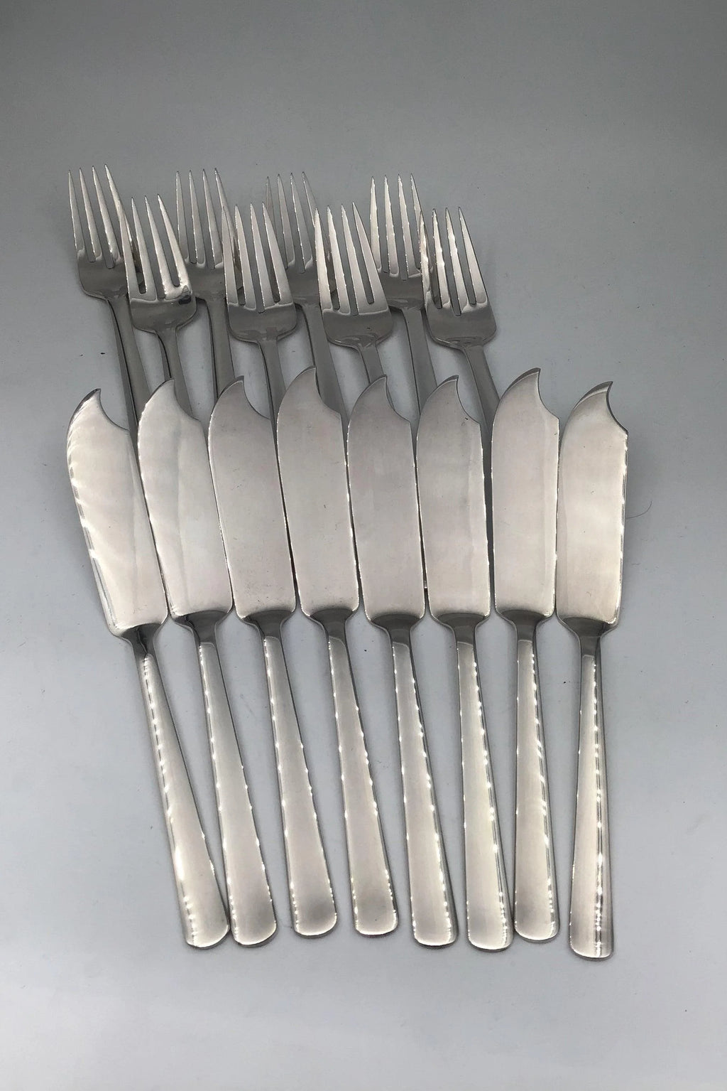 Kay Bojesen纯银鱼肉餐具套装(16件)该套装包括8把鱼肉刀,尺寸为19厘米(7.48英寸),8把鱼肉叉,尺寸为17.5厘米(6.88英寸)。