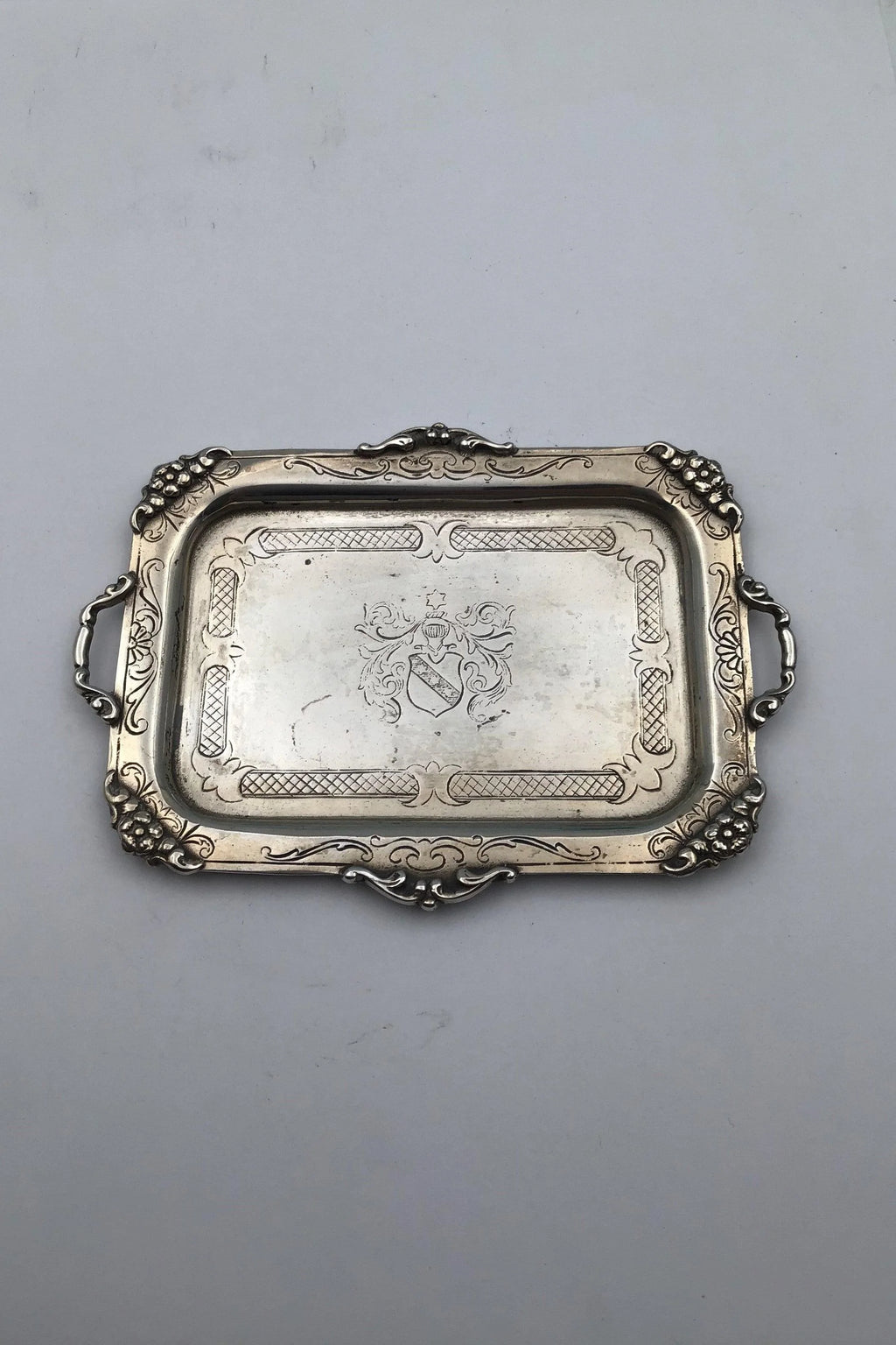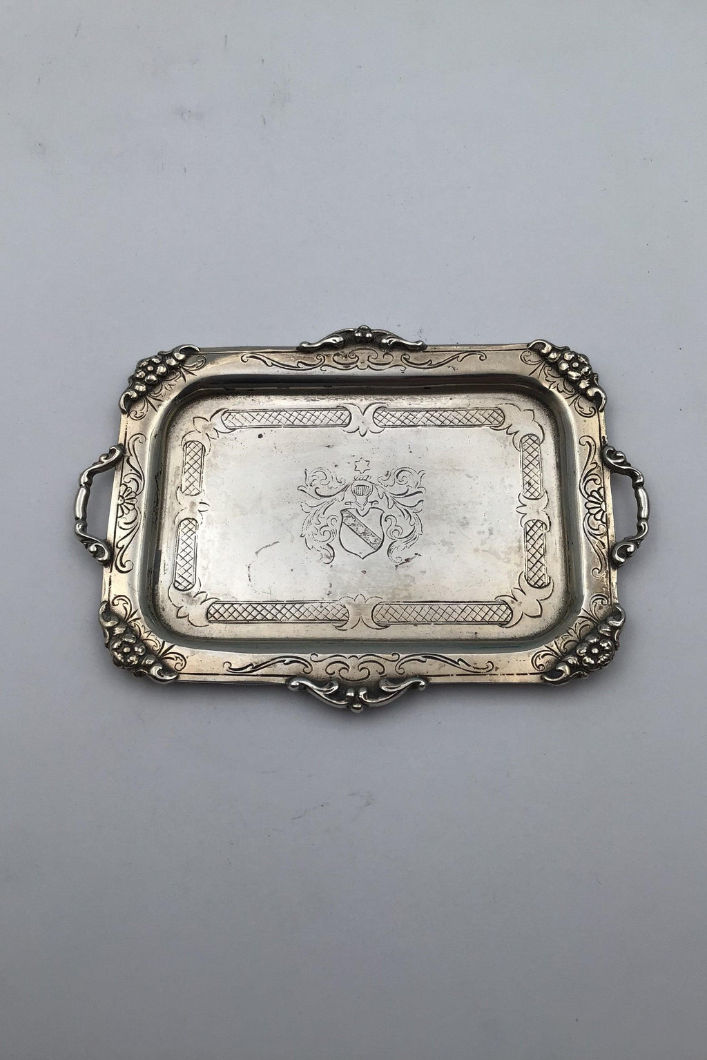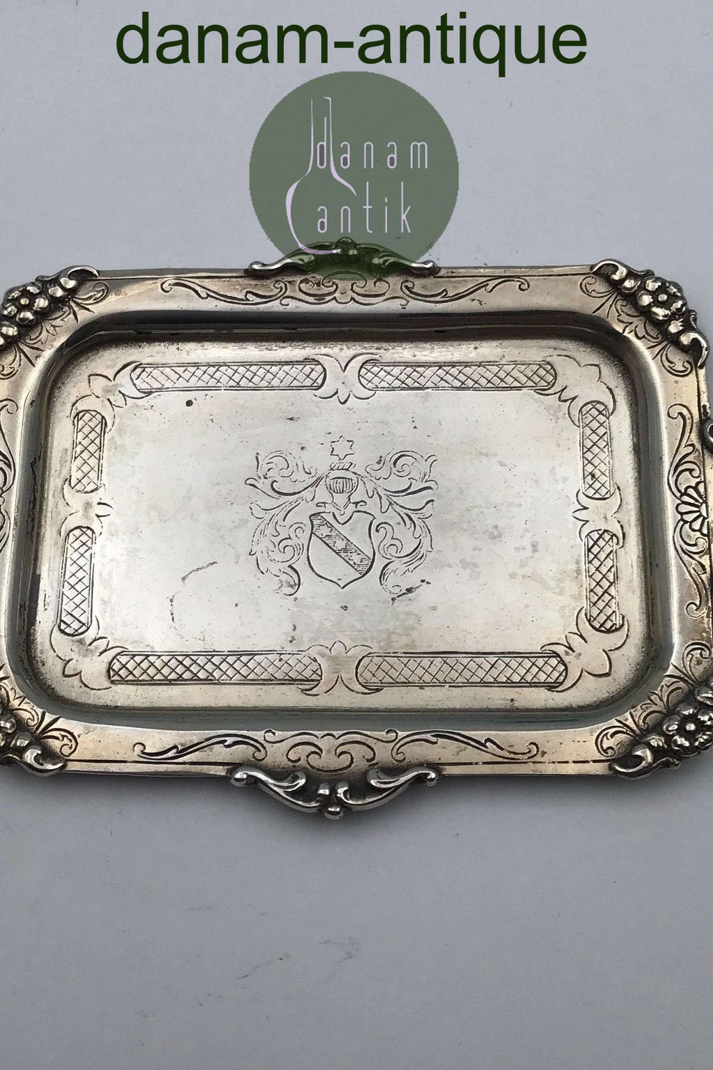 带纹章的小银盘 尺寸 12 厘米 x 9 厘米(4.72 英寸 x 3.54 英寸) 重量 53.7 克(1.89 盎司)
