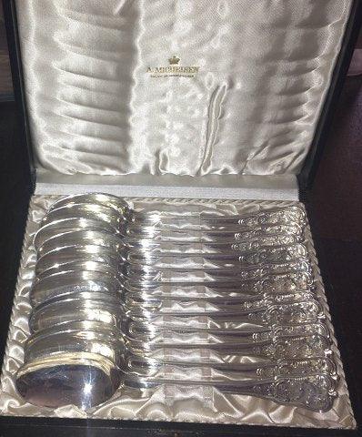 12把安东-米歇尔森纯银罗森伯格甜点勺,由奥勒-哈根设计