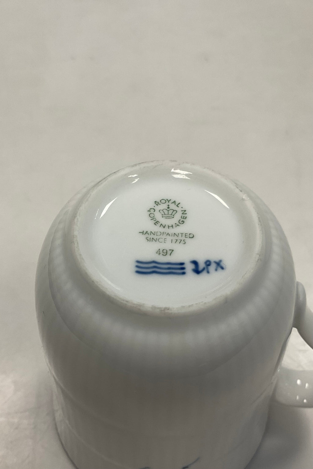 Royal Copenhagen Musselmalet Riflet Krus med hank No. 497. Måler 11 cm / 4.33 inch.