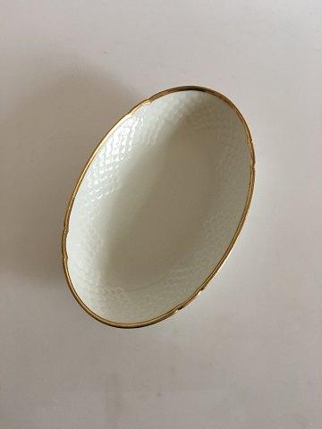 Bing & Grondahl Aakjær Oval Cake Bowl No 39. 24 cm.奶油色,金边。状况良好。
