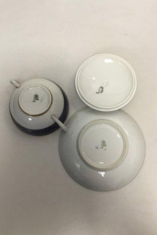 Bing & Grondahl蓝色套装,带金色装饰的Bouillon杯,编号247。尺寸为17.5厘米