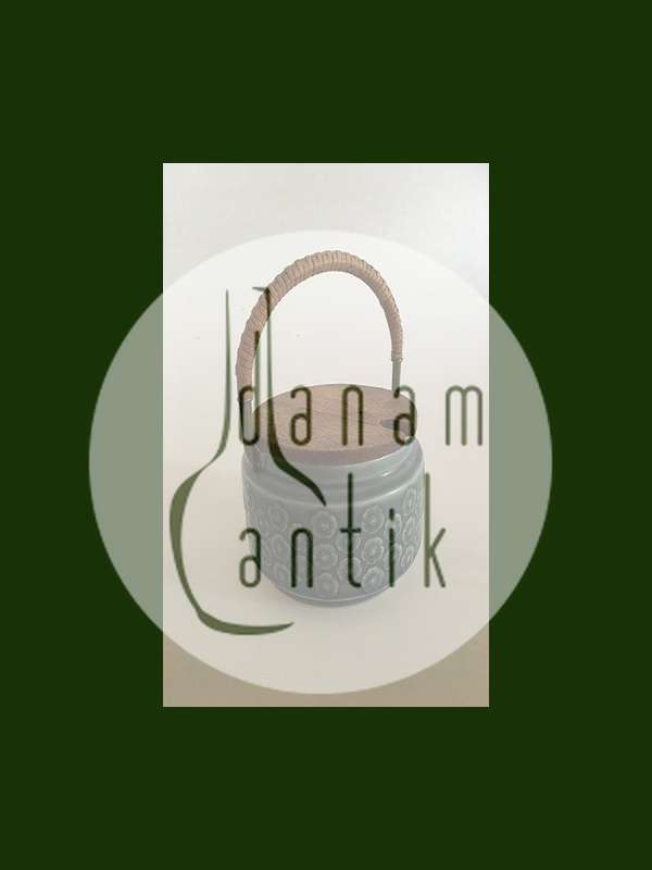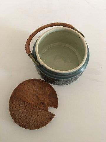 Bing & Grondahl Jens Quistgaard Stoneware for Kronjyden / B&G "Azur" Jam Jar with Wooden Lid。手柄有一些磨损,需要上一些清漆。尺寸为7厘米×10厘米直径。