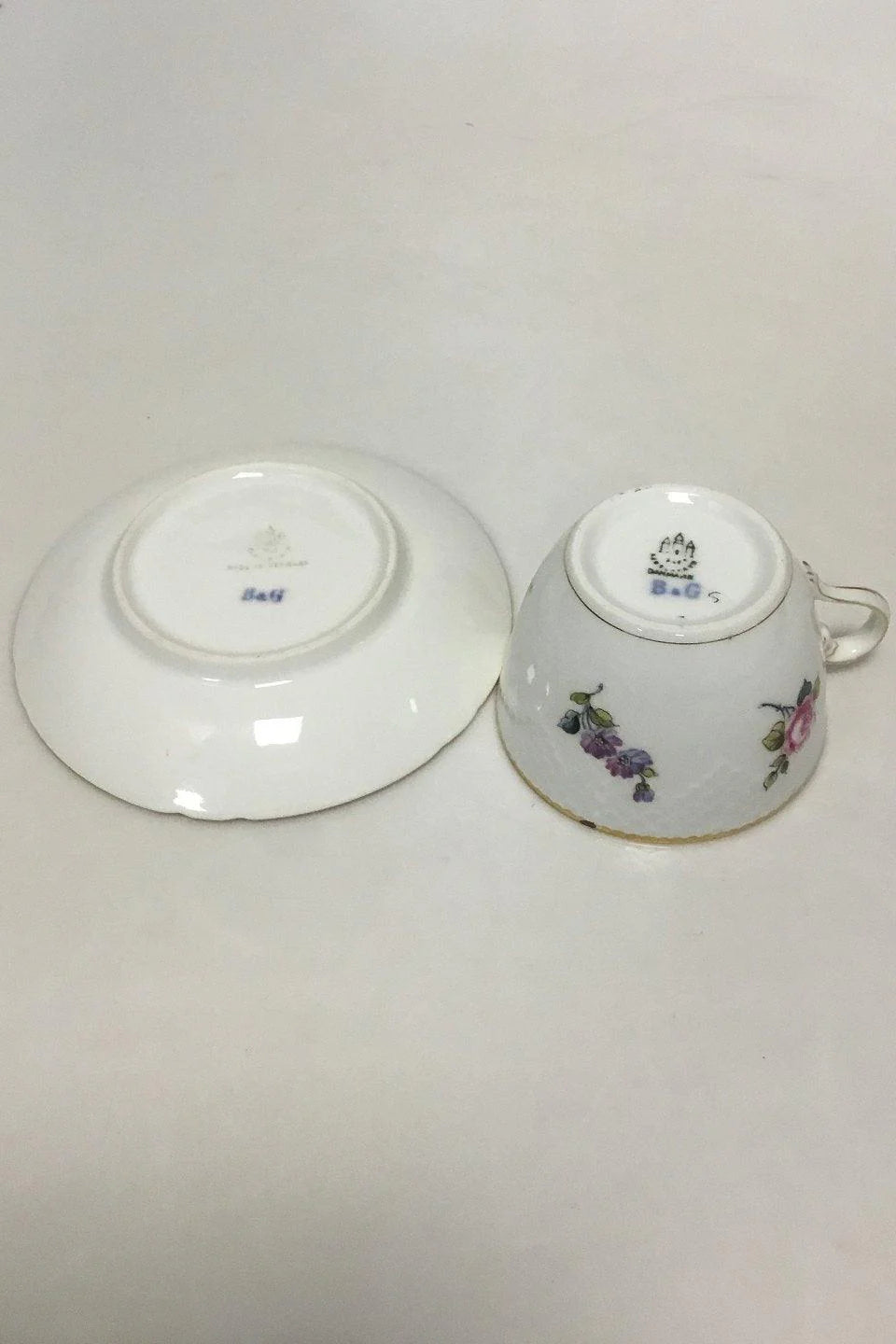 Bing & Grondahl白色撒克逊花大咖啡杯。测量杯:6厘米x 9厘米直径。碟子:14.5厘米