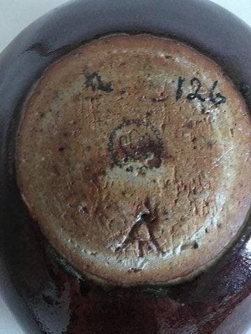 Bing & Grondahl的牛血色釉面炻器碗。高10厘米,长19厘米,保存完好。设计者:阿格尼特-约根森(Agnete Jørgensen)。