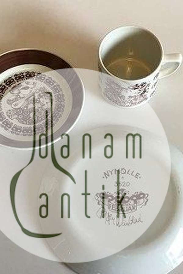 Bjørn Wiinblad为Nymølle设计的2月月饼杯与3513号茶盘和3520号蛋糕盘。测量杯7厘米x 8厘米直径。碟子:15厘米,蛋糕盘:20厘米