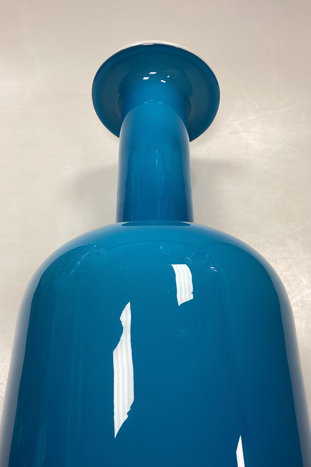 Holmegaard Kunstglas Vase af Otto Brauer i turkis og hvid opaque indvendig. Mærket som 2. Sortering, da der er en luftboble, se foto.Måler 43 cm / 16.93 in.