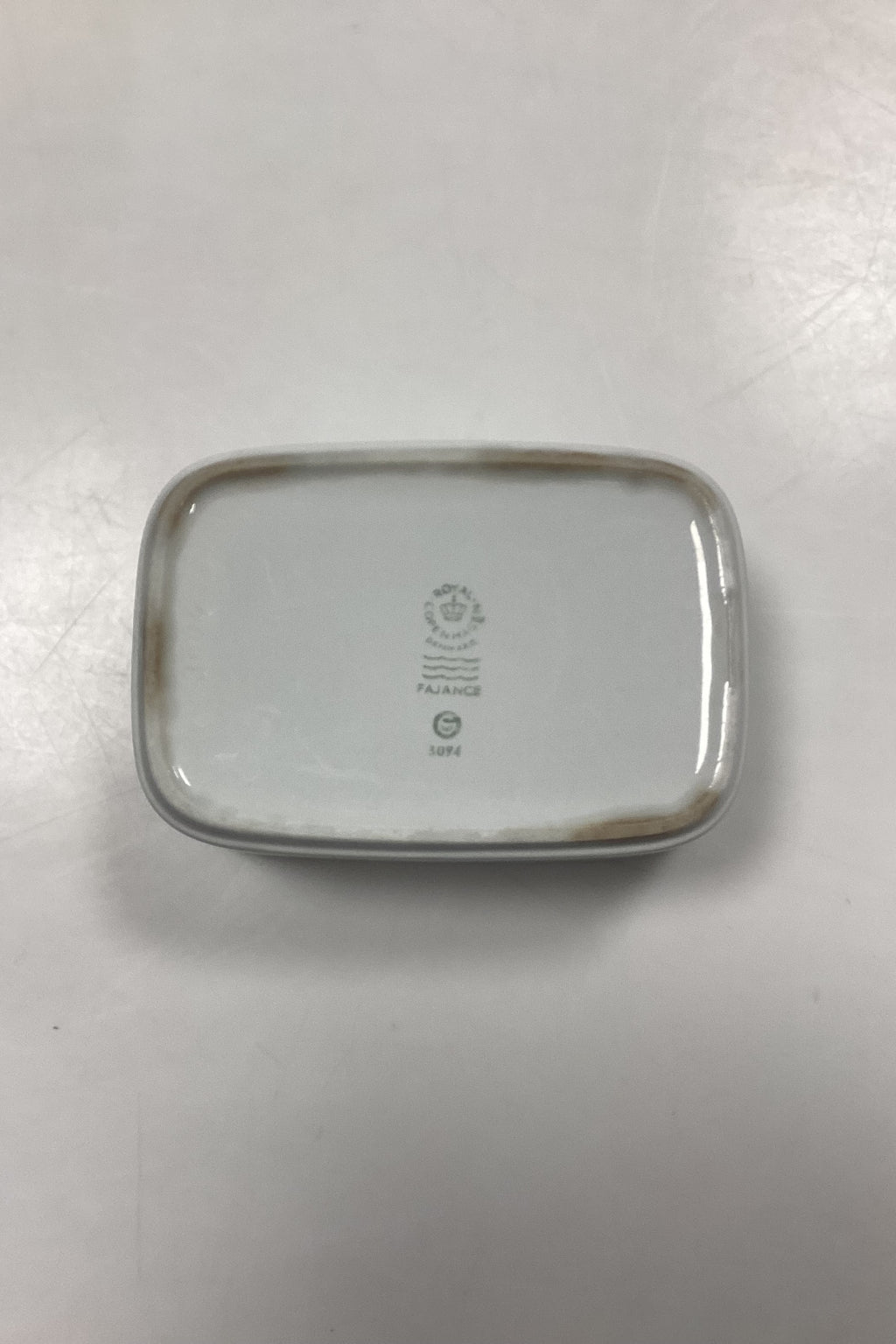 Royal Copenhagen Blåkant Smørboks uden låg No. 3094. Skjolder med farveforskel i fajancen, se fotos. Måler L: 13,5 cm x B: 9 cm x H: 5,5 cm / 5,31 in. x 3,54 in. x 2,16 in.
