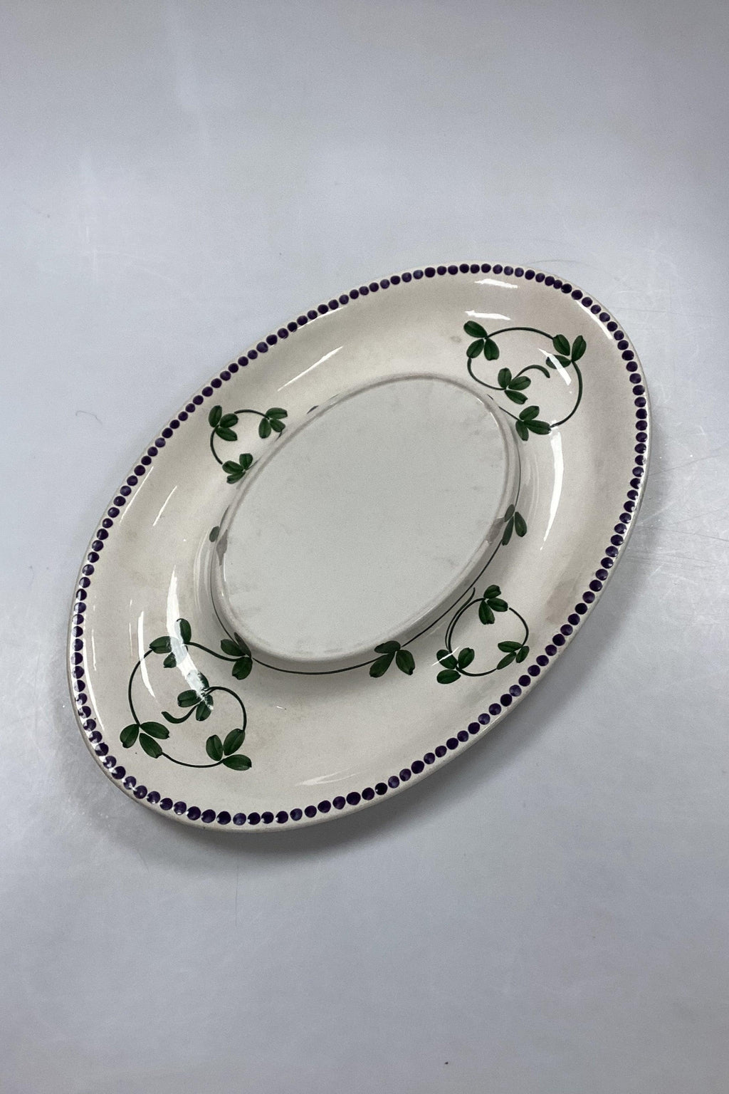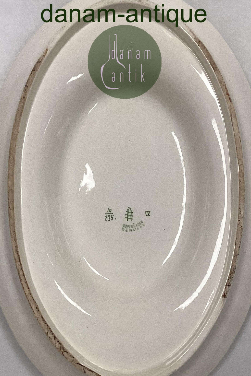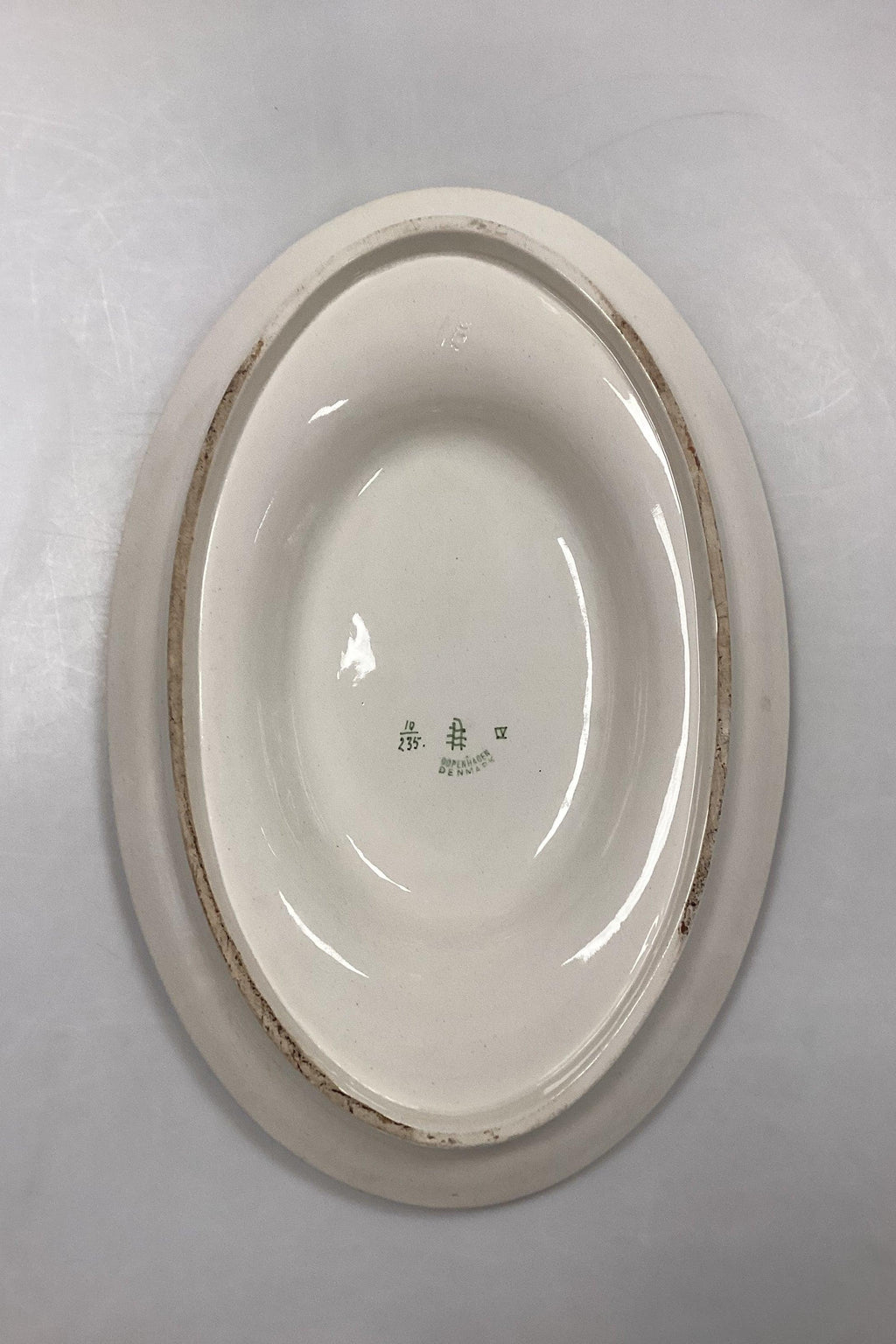 Aluminia Guldregn (Laburnum) Ovalt Terrinfad No. 10/235. Måler 42 cm x 28 cm / 16.54 in. x 11.03 in. To afslag på podiet i midten.