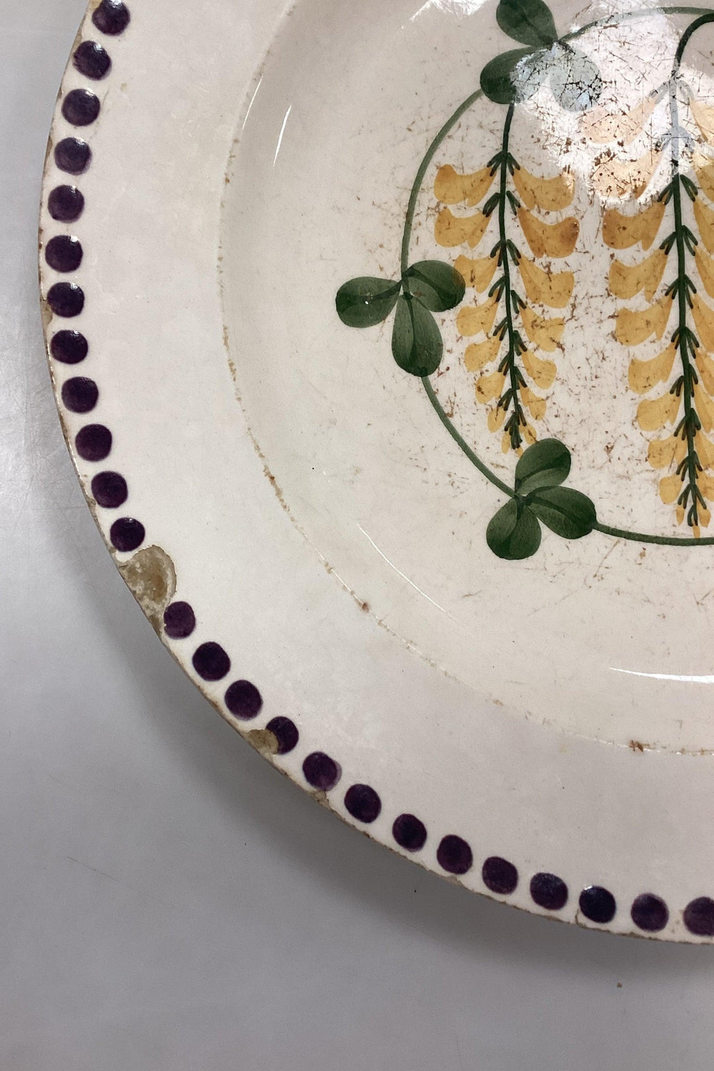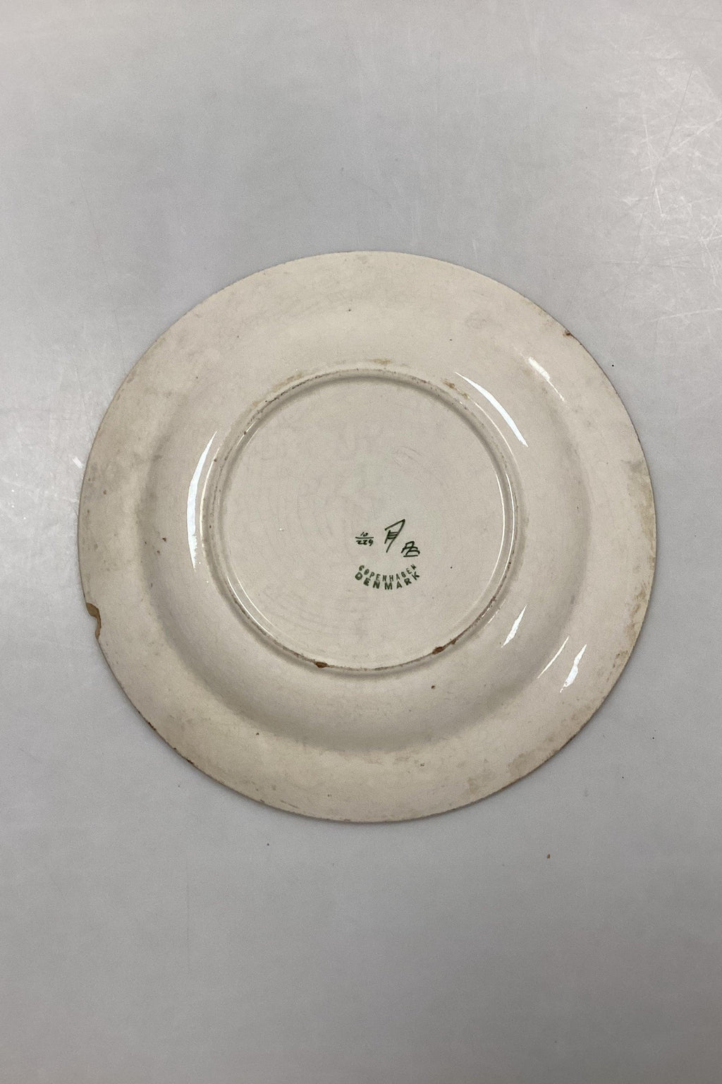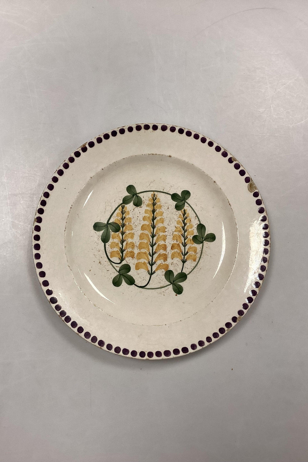 Aluminia Guldregn (Laburnum) Spisetallerken No. 10/229. Slid, hårrevne og afslag i variende antal.Måler 24,5 cm / 9.65 in.Designet af Harald Slott-Møller 1902
