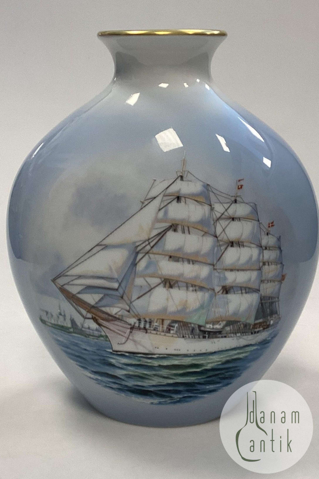 ing og Grøndahl Art Nouveau Vase - Skoleskibet Danmark ved Kronborg No. 8872/5506. Motiv af James E. Mitchell. Fremstillet i begrænset oplag Nr. 816 af 2500.