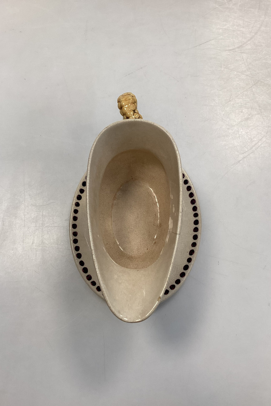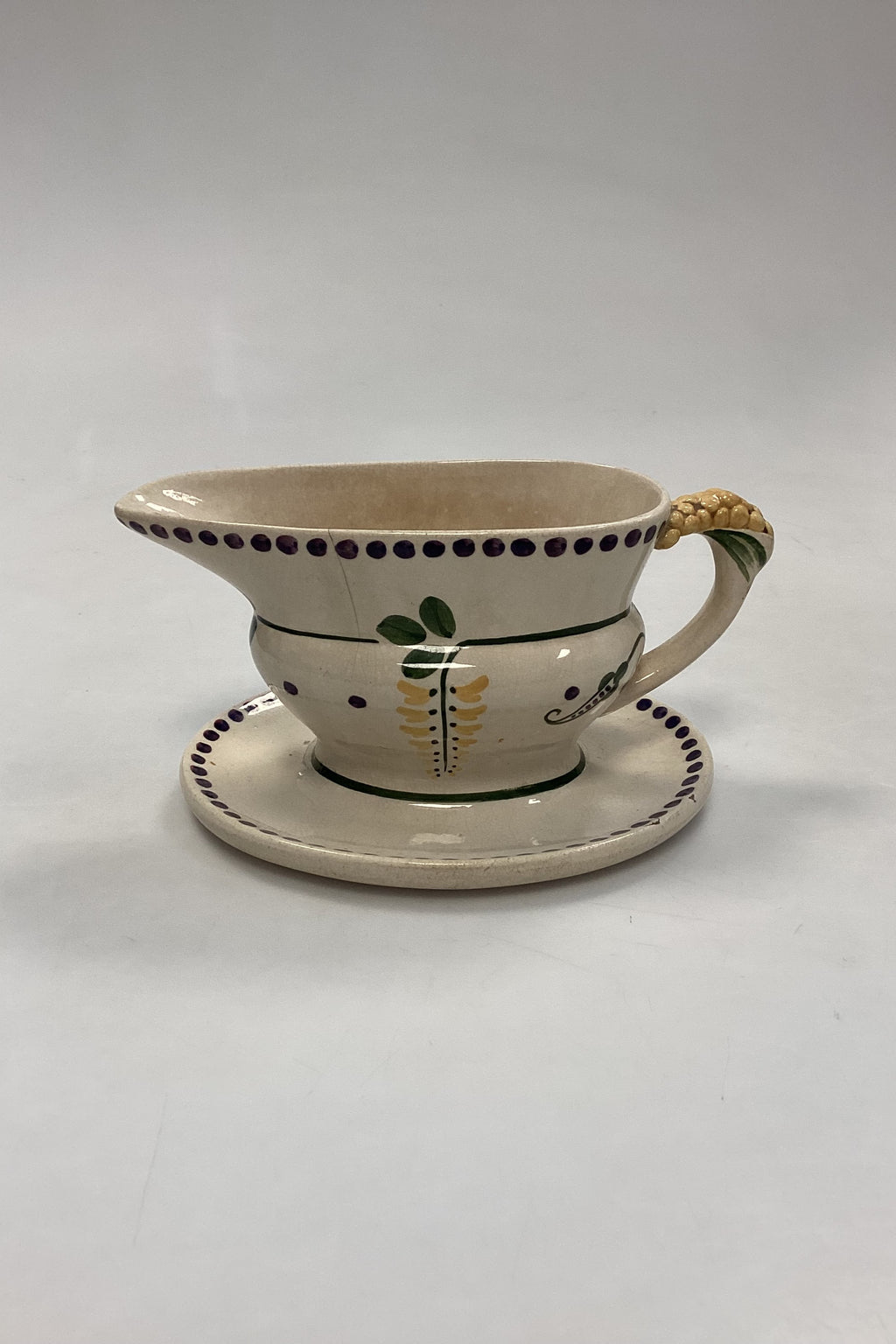 Aluminia Guldregn (Laburnum) Sauceskål med fast bund No. 10/189. Krakeleringer, hårrevne og afslag på kant, se foto. Designet af Harald Slott-Møller 1902.