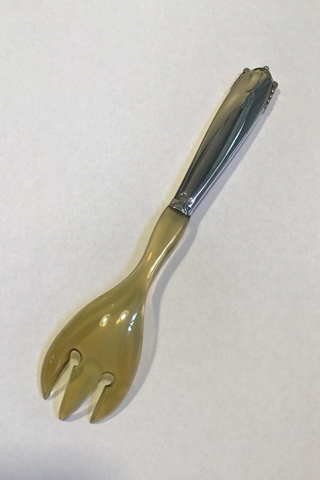 Georg Jensen银质Akkeleje沙拉叉,编号342B(角),尺寸16.3厘米(6 27/64英寸)。