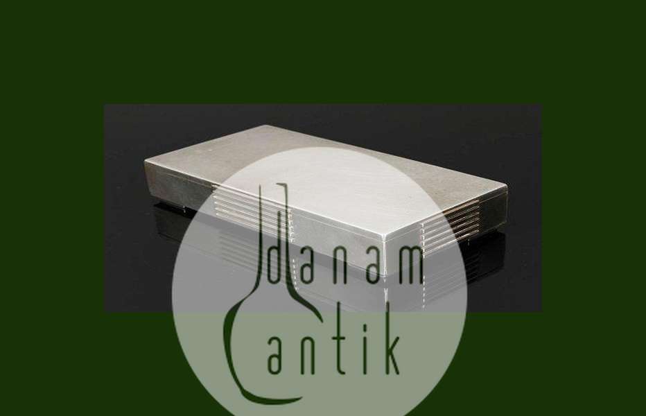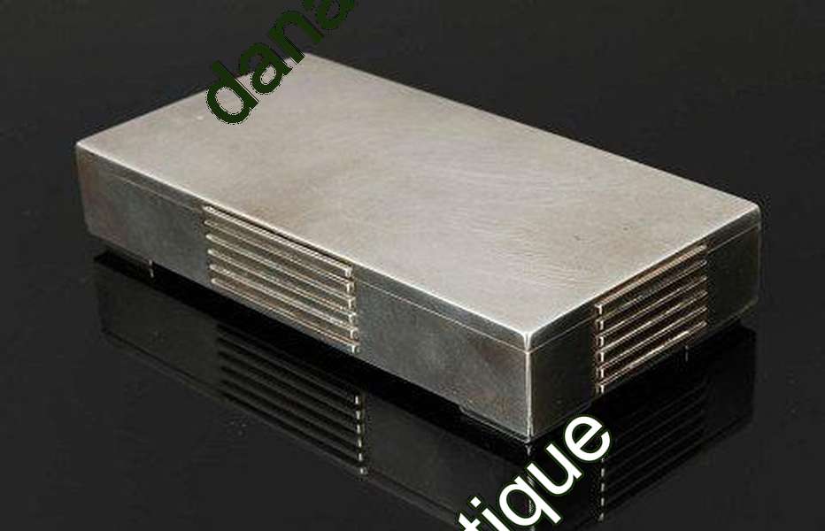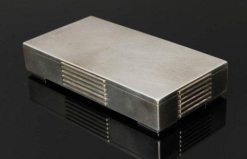 Georg Jensen纯银盒子,编号857。尺寸为16厘米 x 8厘米 x 3厘米。设计者:索伦-延森(Søren Jensen)。从1945年以后。