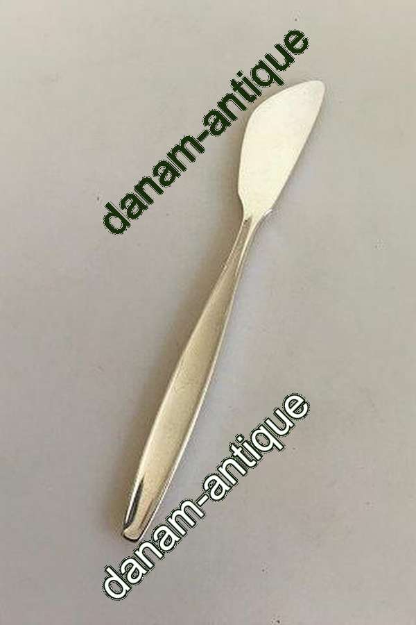 Georg Jensen纯银柏树黄油刀,编号046。1954年由蒂亚斯-埃克霍夫设计。尺寸为15,9厘米