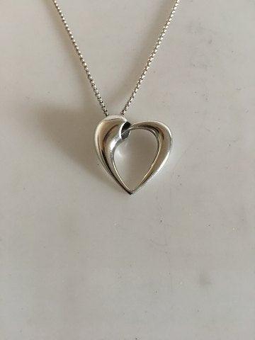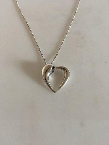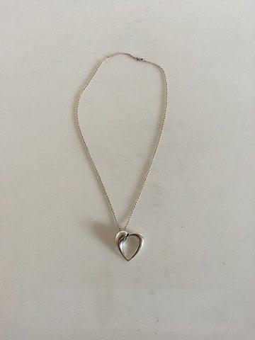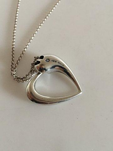 Georg Jensen纯银项链,心形吊坠。链条的长度为45厘米。心脏的尺寸为2.5厘米。重量为12克。
