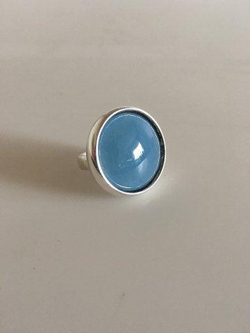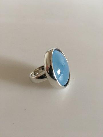 Georg Jensen纯银戒指,编号466,带蓝色石英。设计者:Regitze Overgaard。尺寸55。圆形部分 直径2.7厘米。重量为19,4克。在完美的条件下。