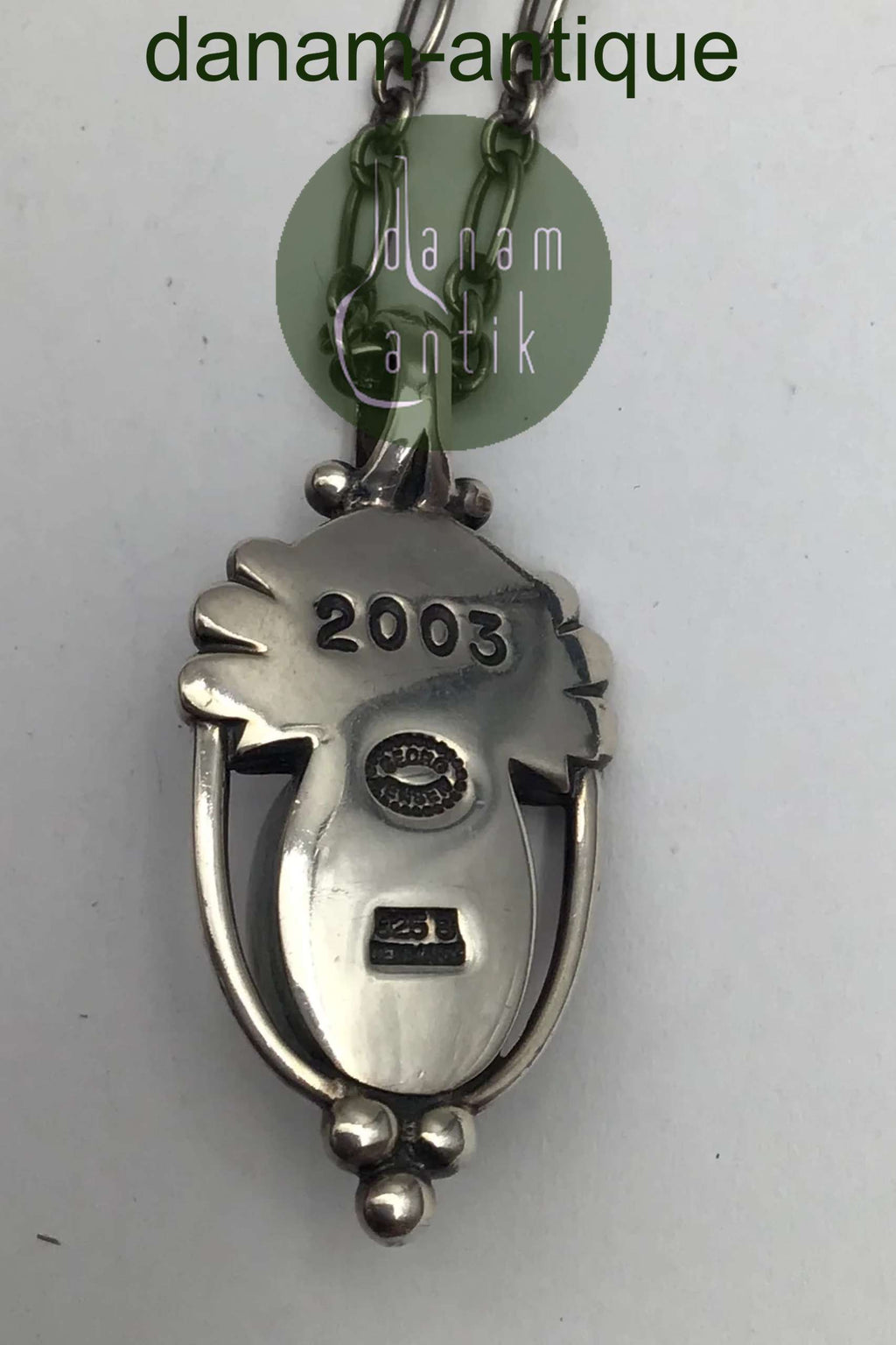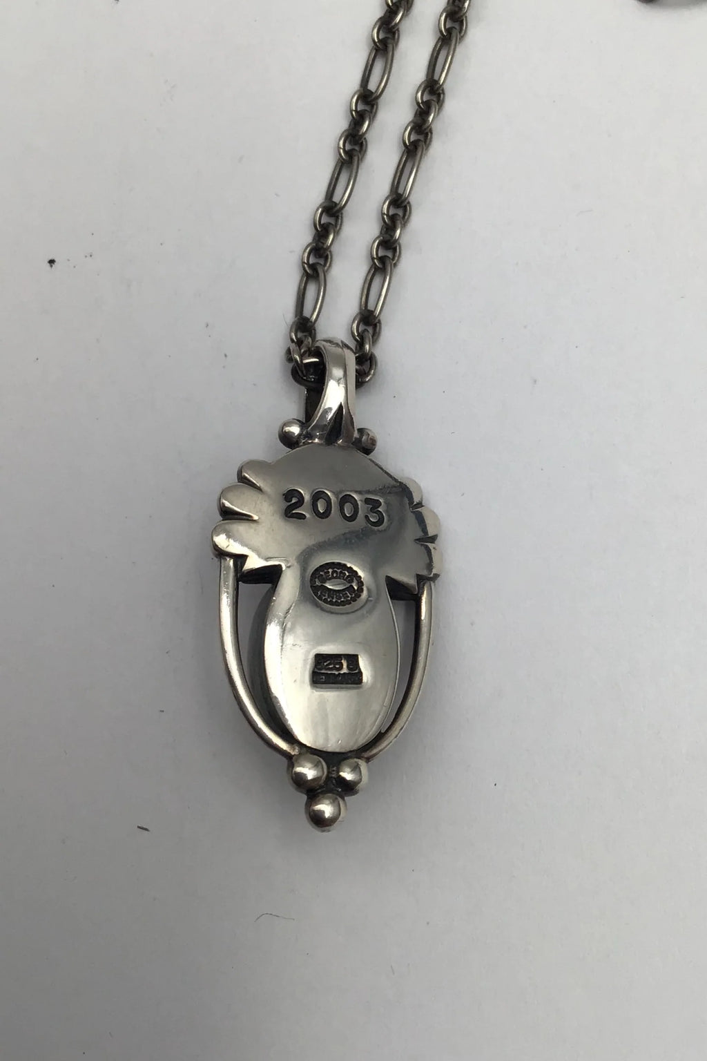 Georg Jensen Sterling Sølv Årsvedhæng 2003 Måler 3.4 cm x 1.6 cm (1.33 inch x 0.62 inch) Kæde 44 cm (17.32 inch) Samlet Vægt 13.2 gr (0.47 oz) (Æske)