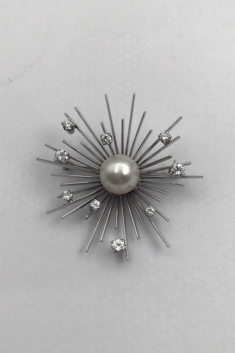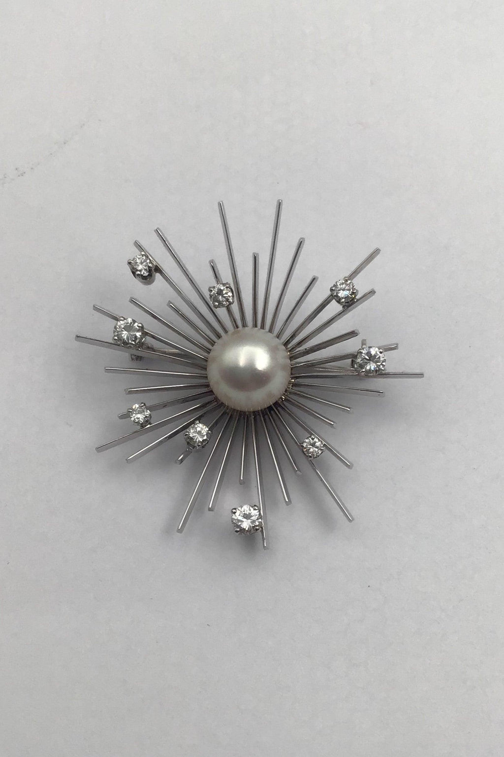 Georg Jensen & Wendel 18 K Hvidguld Broche med Perle og Brillanter
