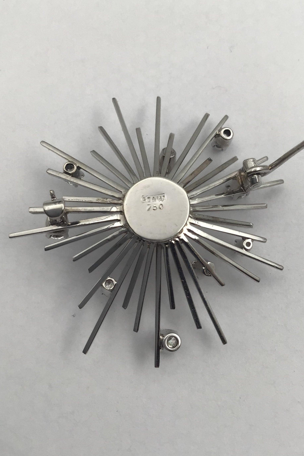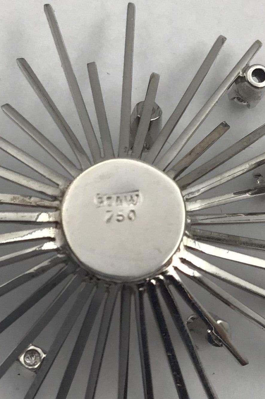 Georg Jensen & Wendel 18 K Hvidguld Broche med Perle og Brillanter Måler Diam 3.8 cm (1.49 inch) Vægt 9.1 gr (0.32 oz)