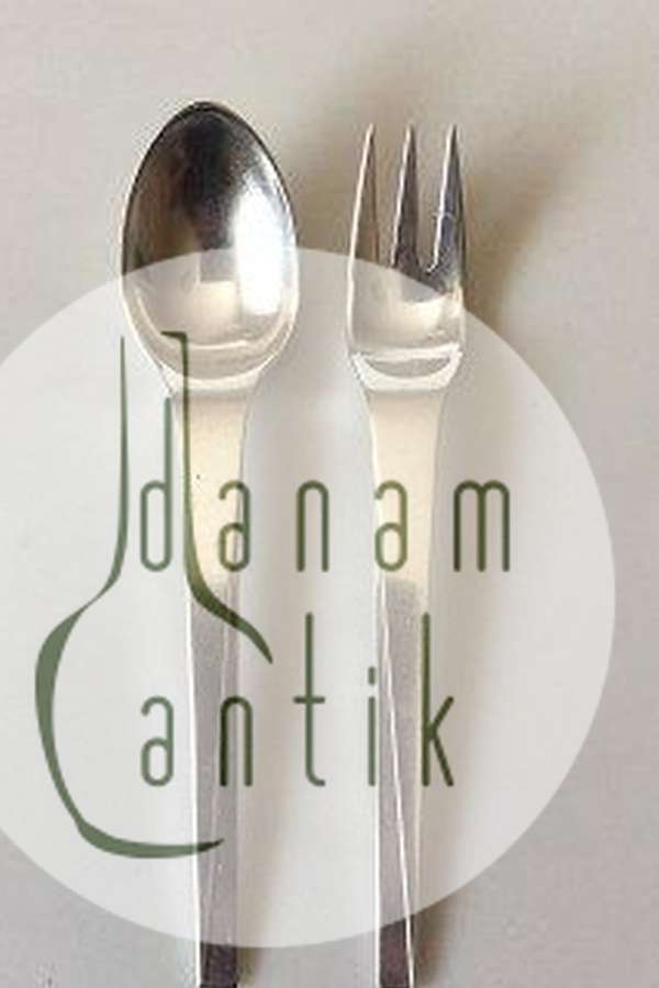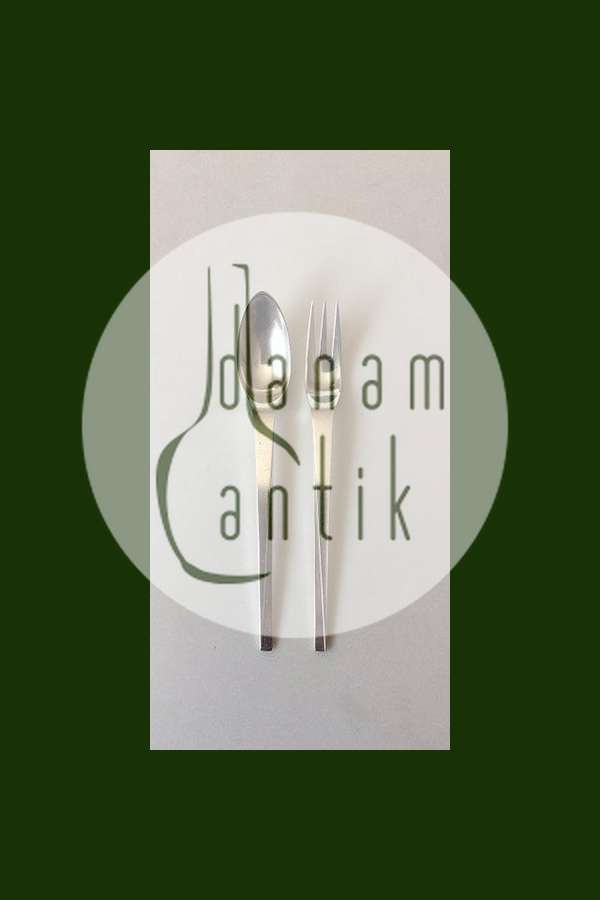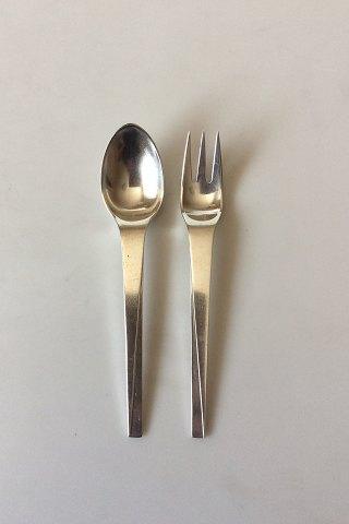 汉斯-汉森纯银婴儿餐具,勺子和叉子。
