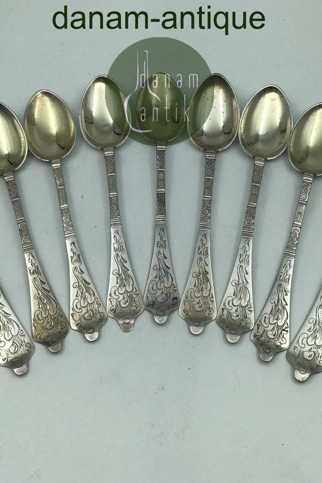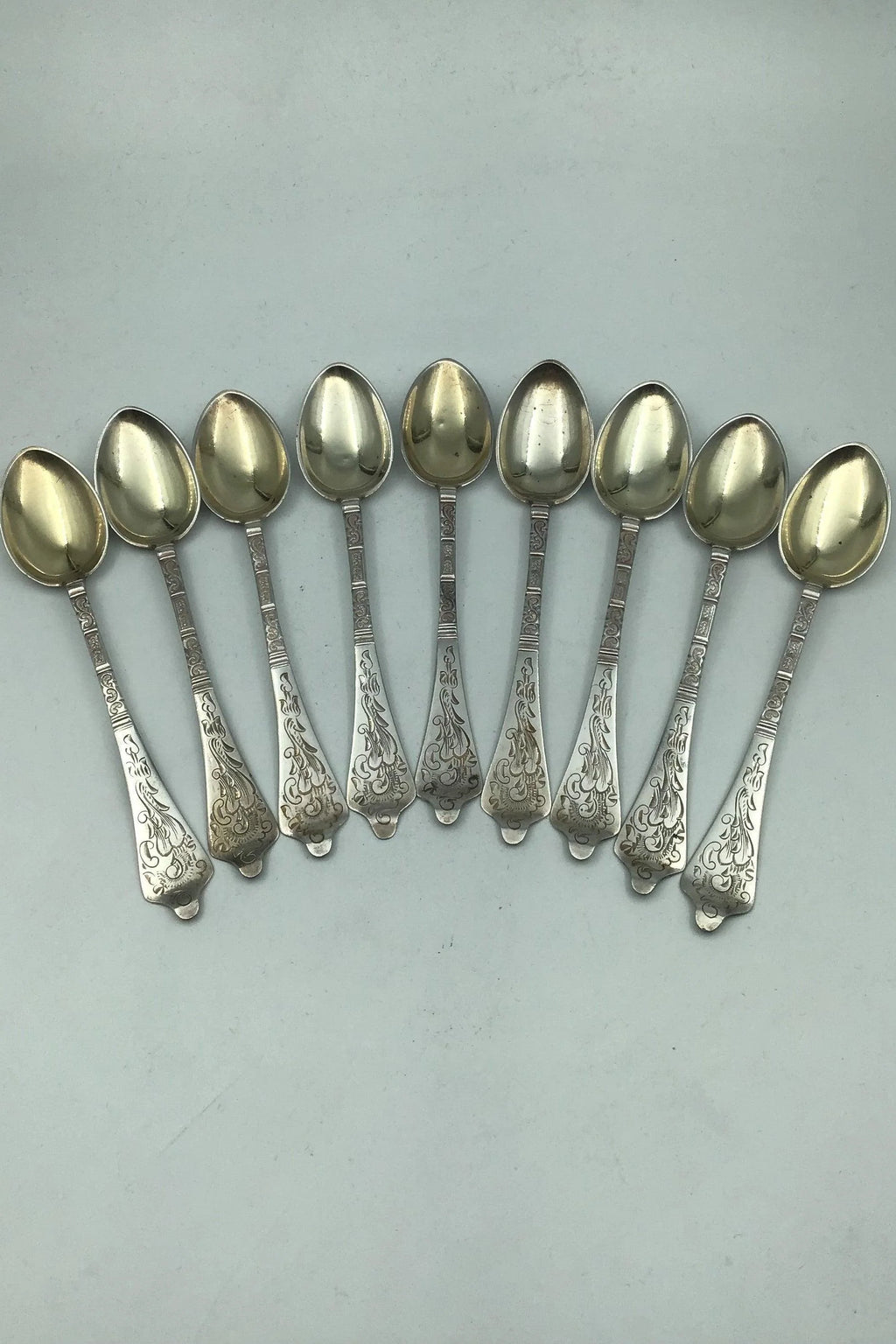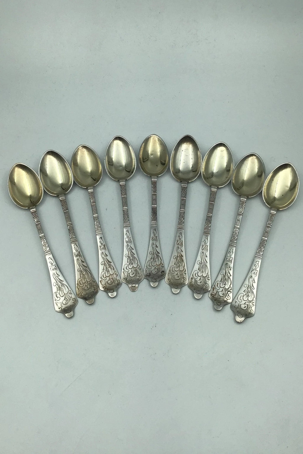 Horsens Sølv Antik银质咖啡勺(9) 一套9个轻度镀金的咖啡勺,尺寸为12.6厘米(4.96英寸)。