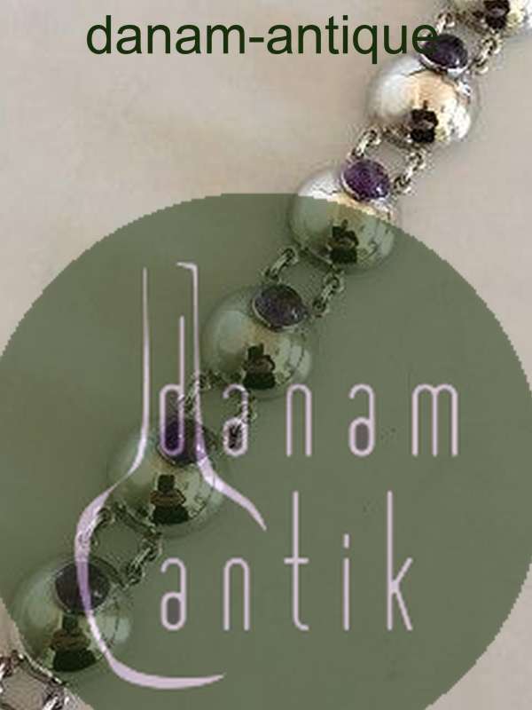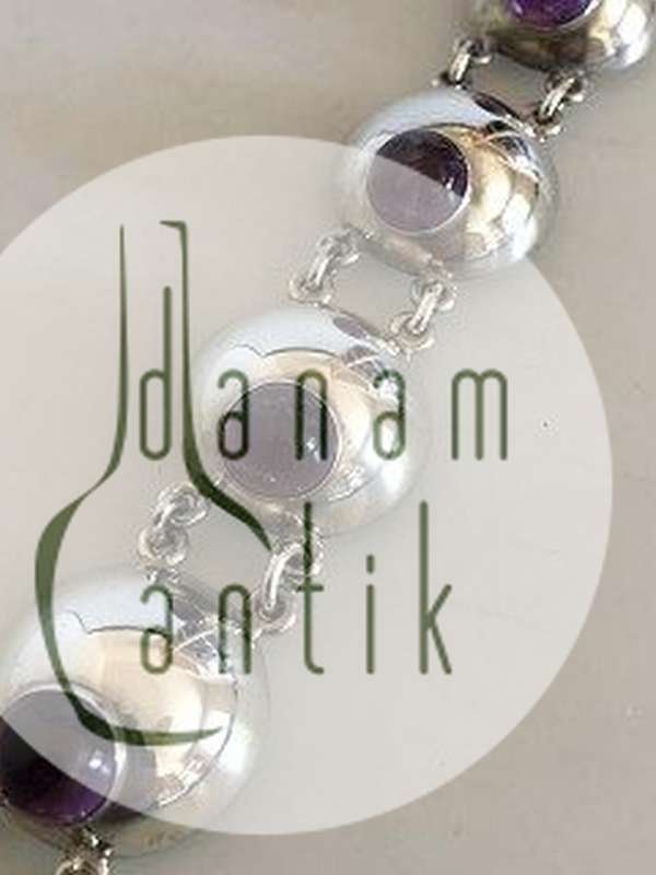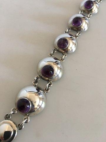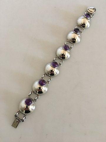 N.E. From Sterling Silver Bracelet decored with Amethyst. 长19厘米,宽2.2厘米。重量为44克。状况良好。