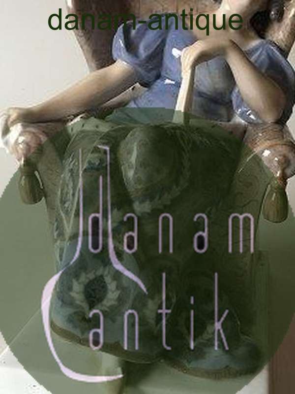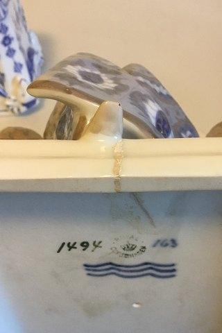 Royal Copenhagen Figure Queen No 1494。尺寸为25厘米,已被修复。由克里斯蒂安-托姆森设计。这个人物的脚部周围有一个修复的地方,它已经开裂了。此外,鹦鹉上有两处破损,其中一处在耳朵上,最后在底座的一个角落有一个破损。