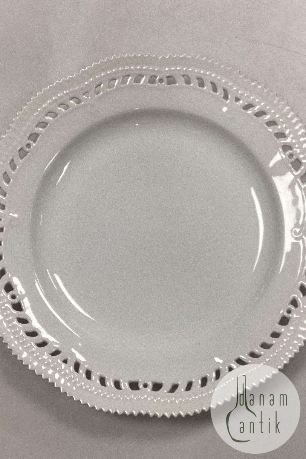 皇家哥本哈根Flora Danica Pearlware白色盘子,边缘镂空3553。